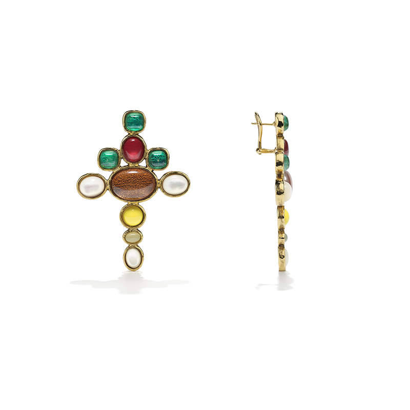 北京仓|Goossens Paris-Lagune-多宝 十字 岩石水晶 吊坠 耳环[法国设计师]