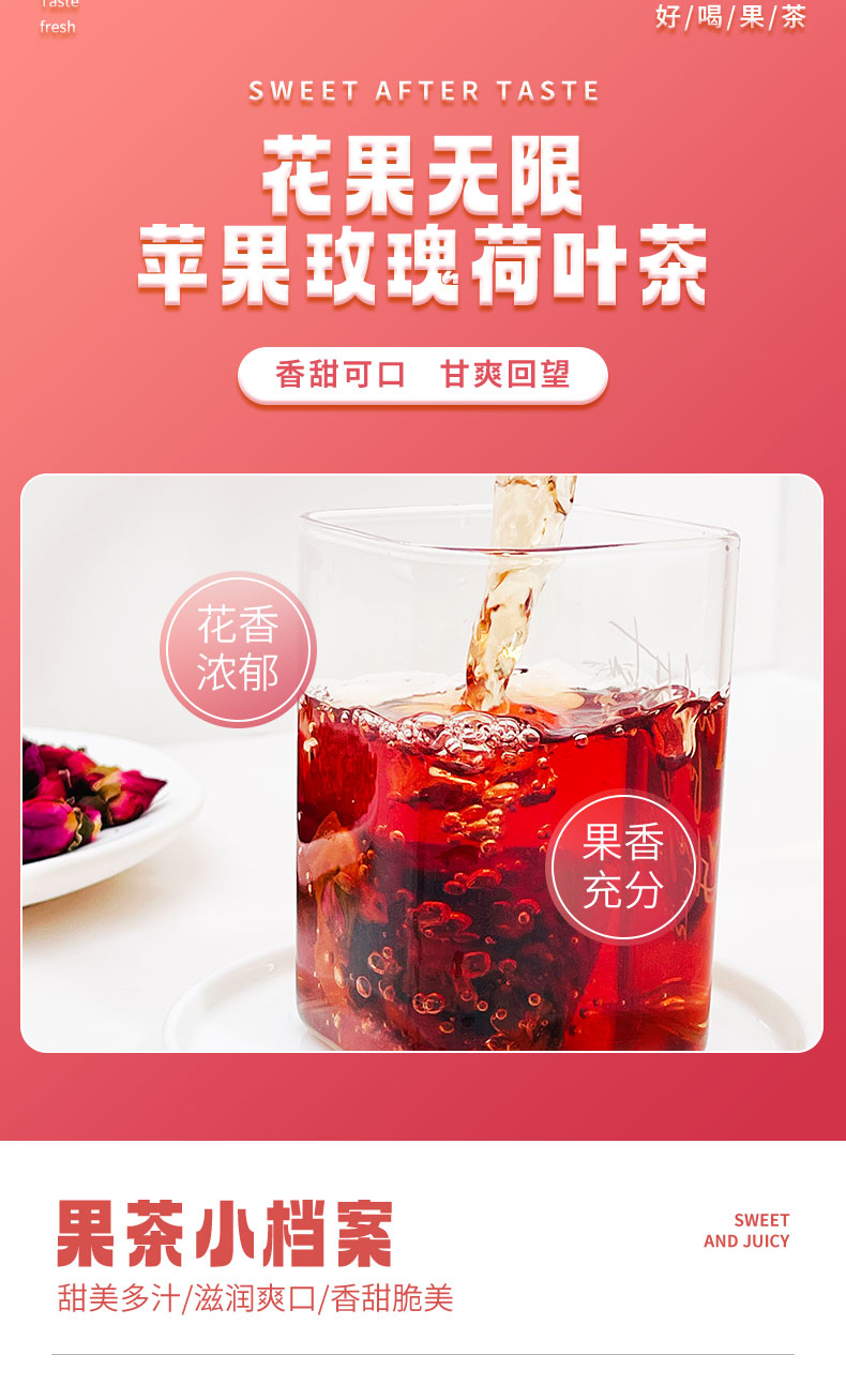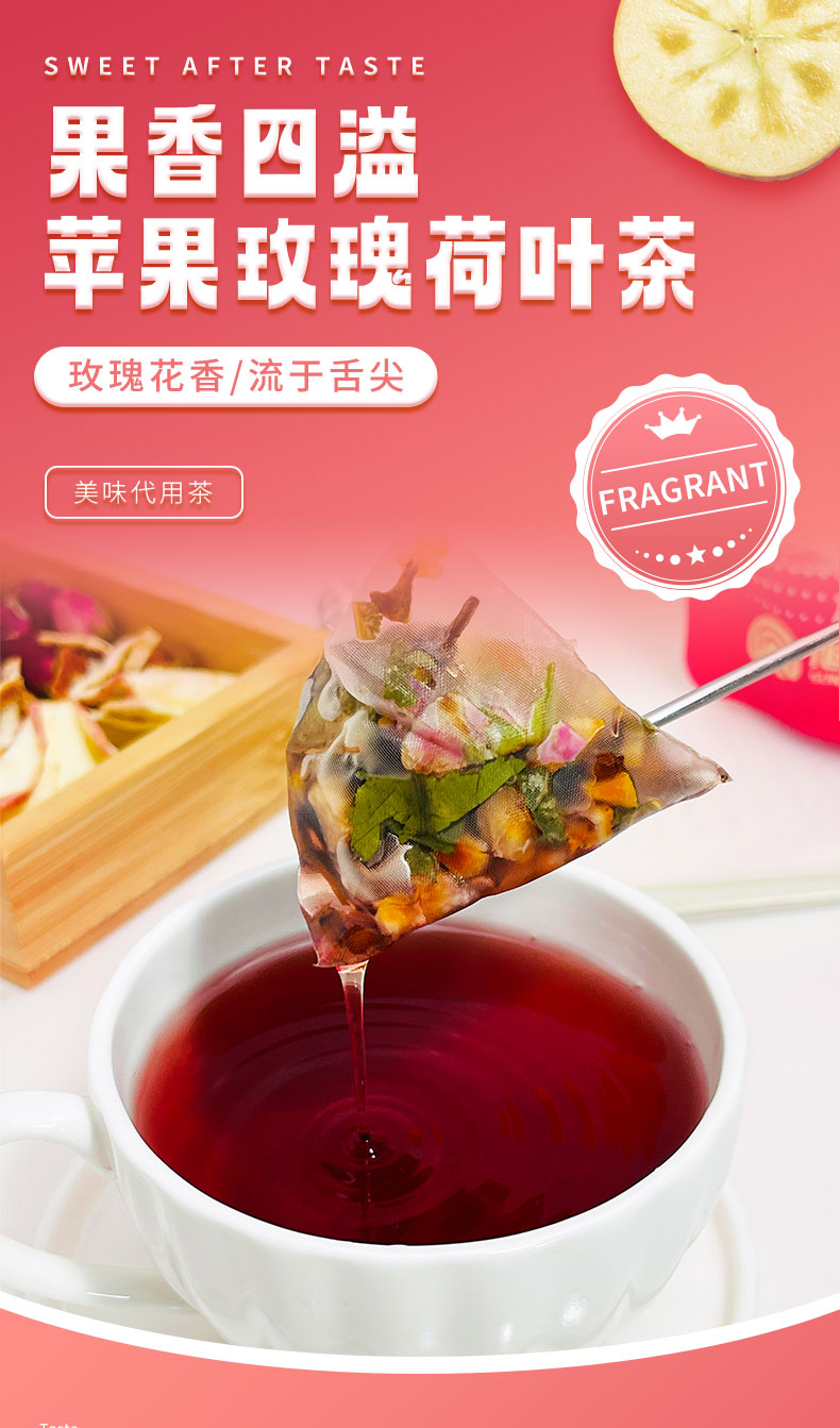 【宜昌助农馆】旭旦苹果玫瑰荷叶茶 重瓣玫瑰桑葚决明子袋泡茶女生夏日冲泡养生茶75g