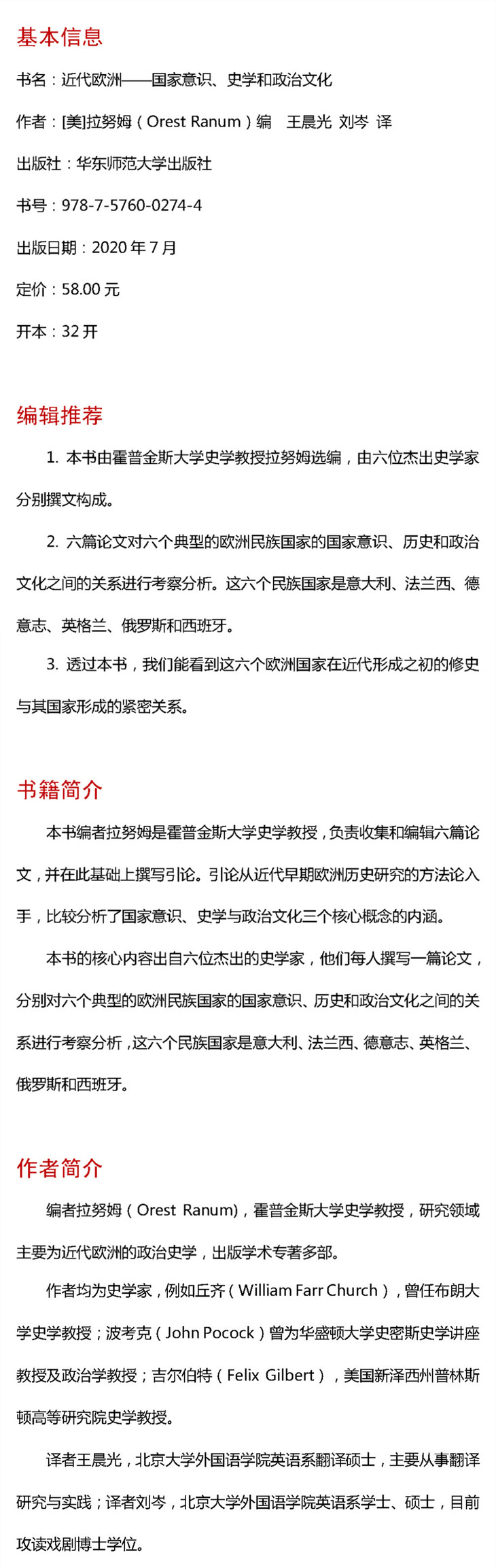 近代欧洲 国家意识 史学 政治文化 西方传统 经典与解释 政治史学丛编 正版图书 华东师范大学出版社