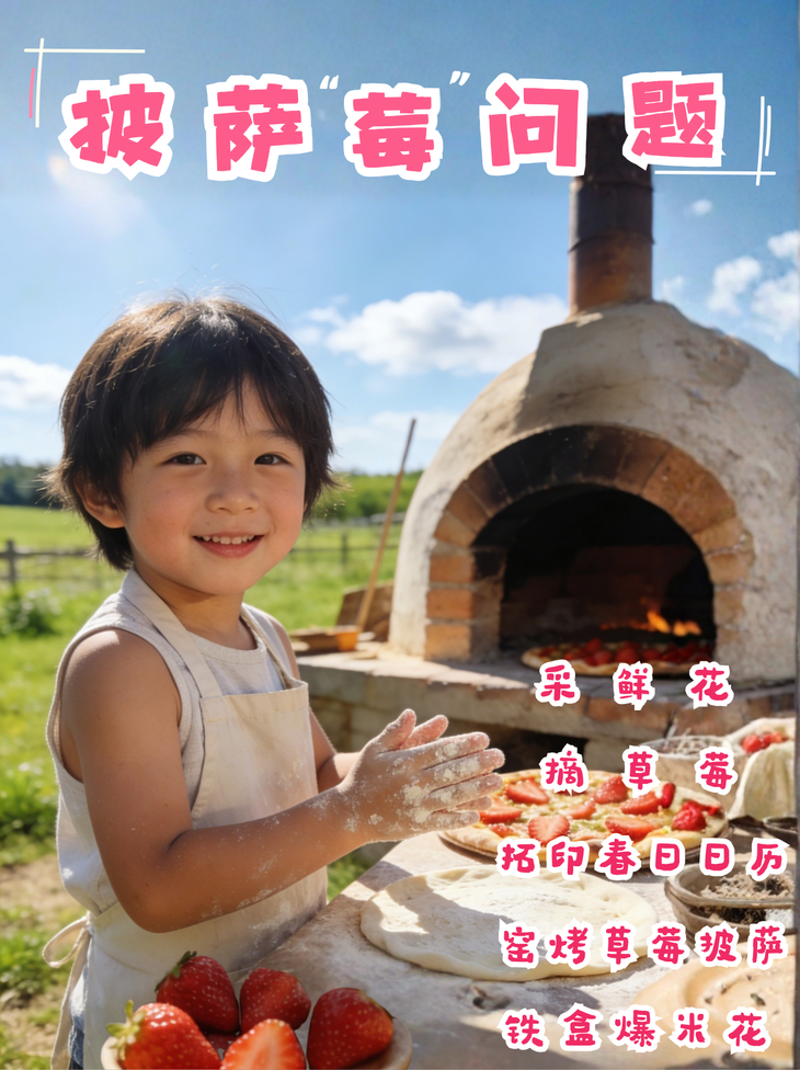 已成团4.11下午场【天府新区-披萨“莓”问题.半日亲子营】采鲜花、拓印春日日历,采摘草莓,窑烤草莓披萨,快乐亲子活动:铁盒爆米花