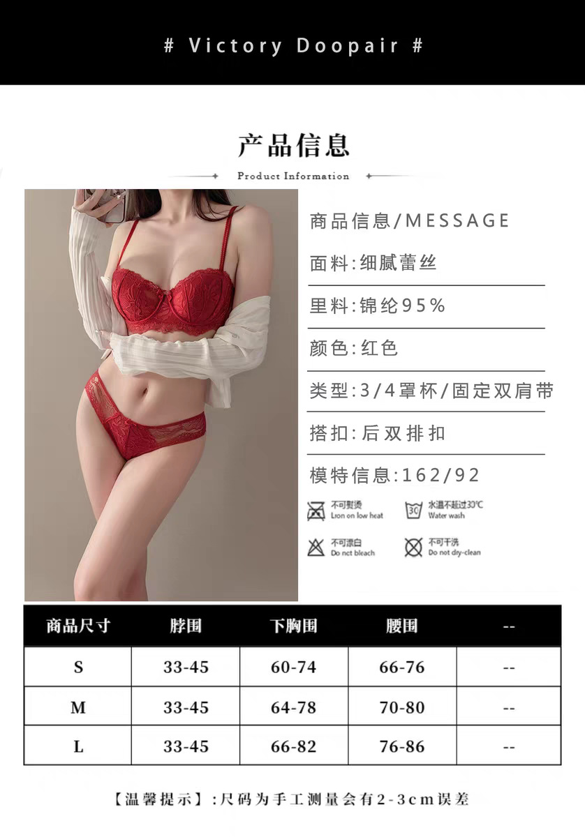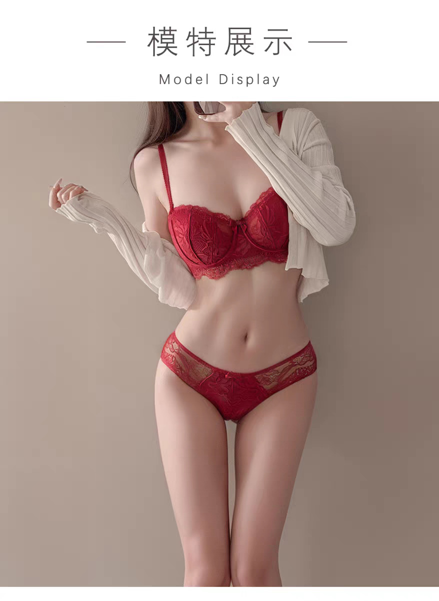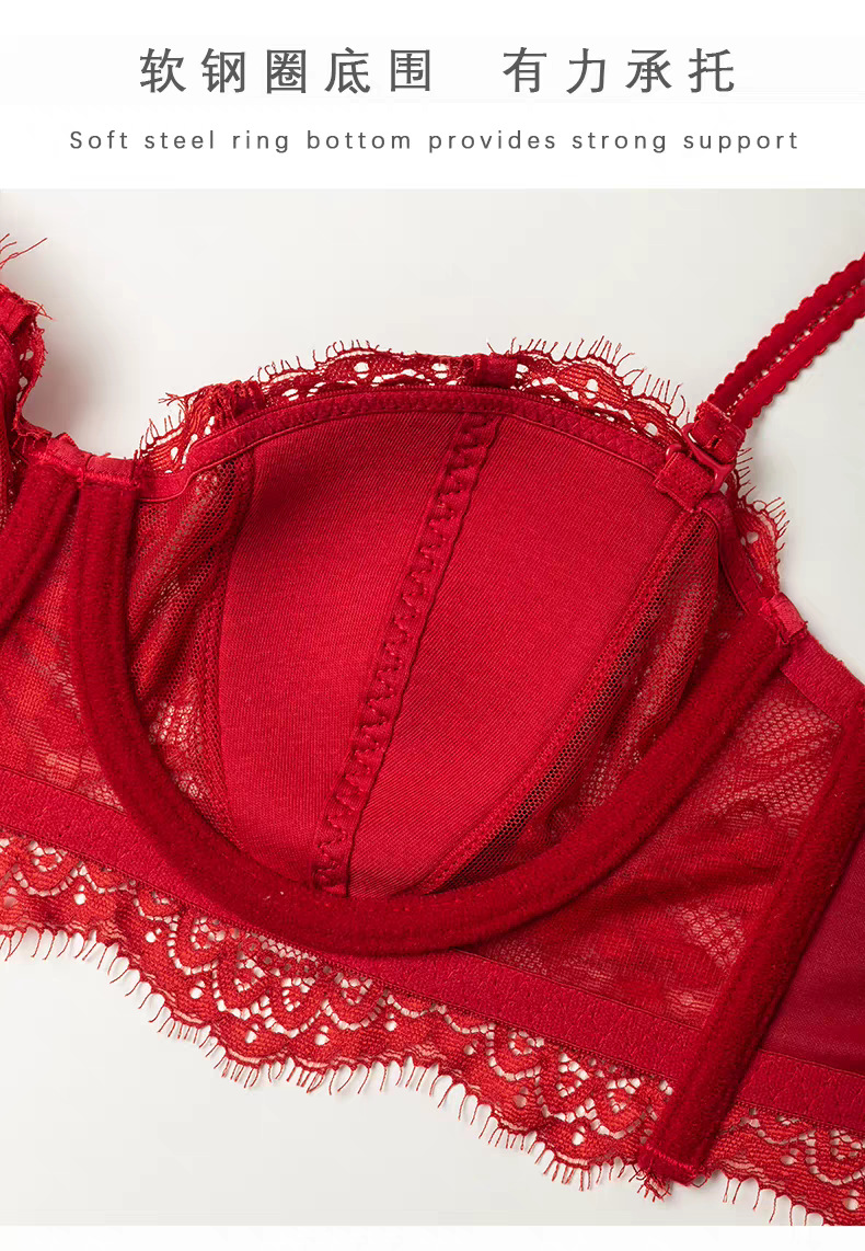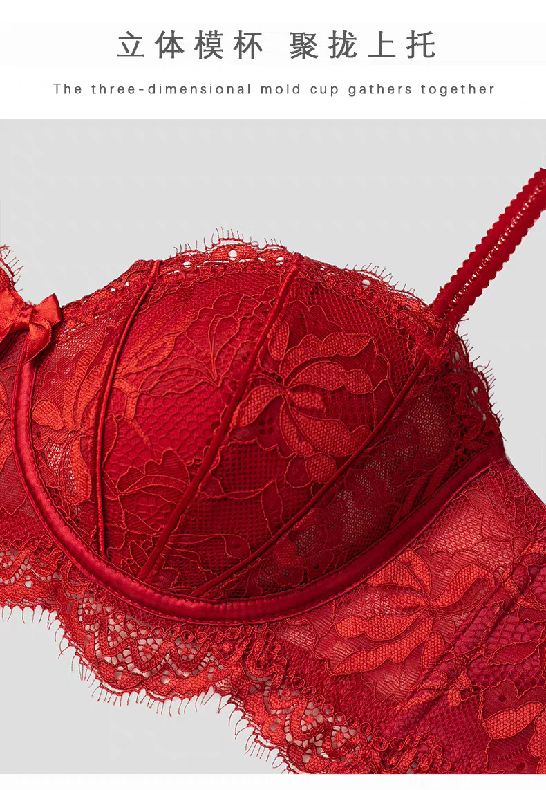 【本命年❗️蕾丝红色内衣套装】细软花卉蕾丝,时尚兔耳朵内杯,软钢圈底围有力承托,大胸显小侧翼软胶,收副乳结婚新娘红色蕾丝文胸秋冬季QQ