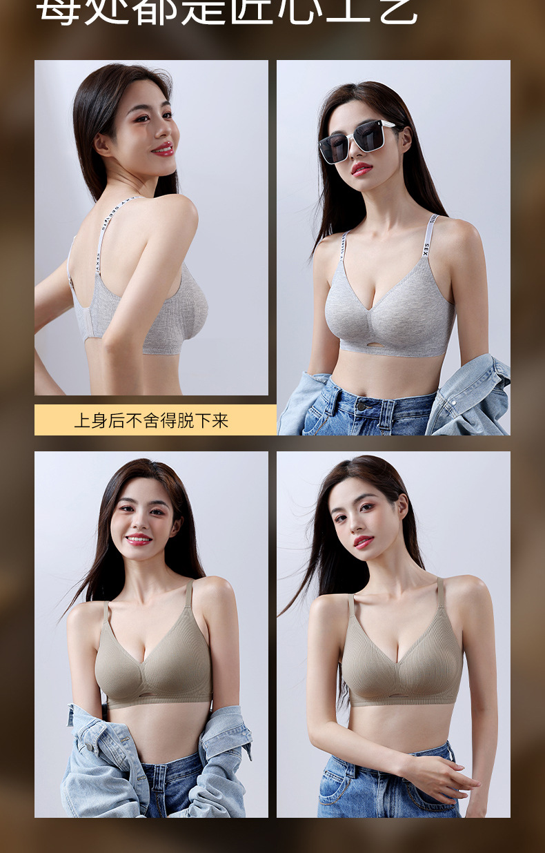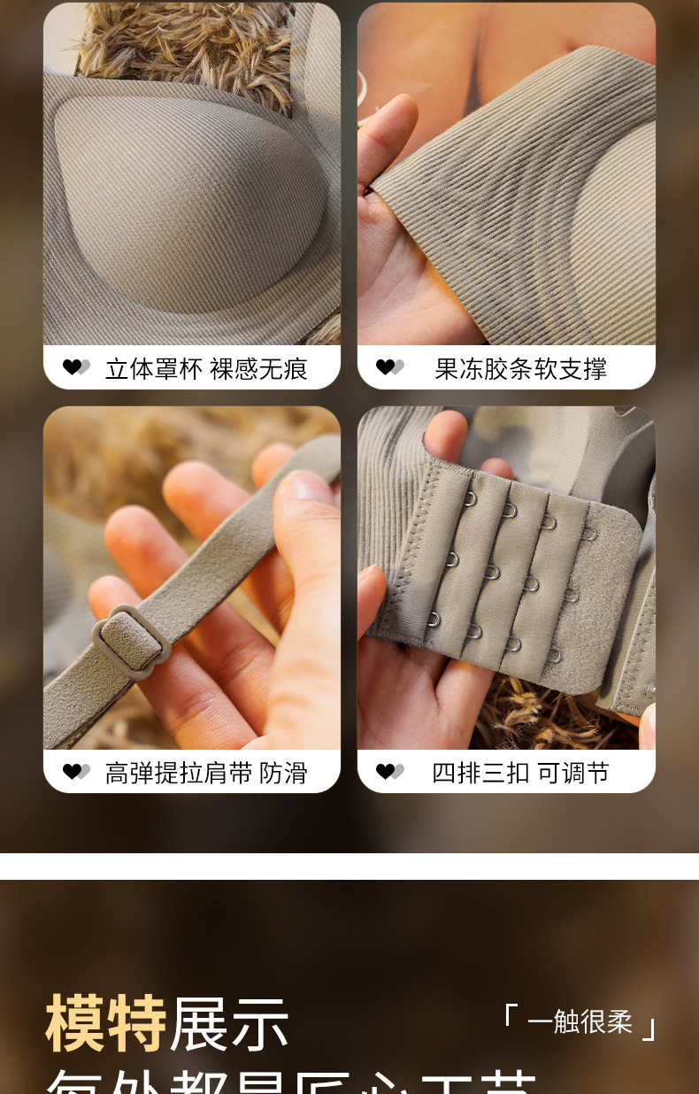 【科技升级❗️自然聚拢无痕内衣】果冻胶条软支撑,可机洗,不移位!螺纹小胸3D立体杯果冻胶软支撑裸感秋冬收副乳文胸罩