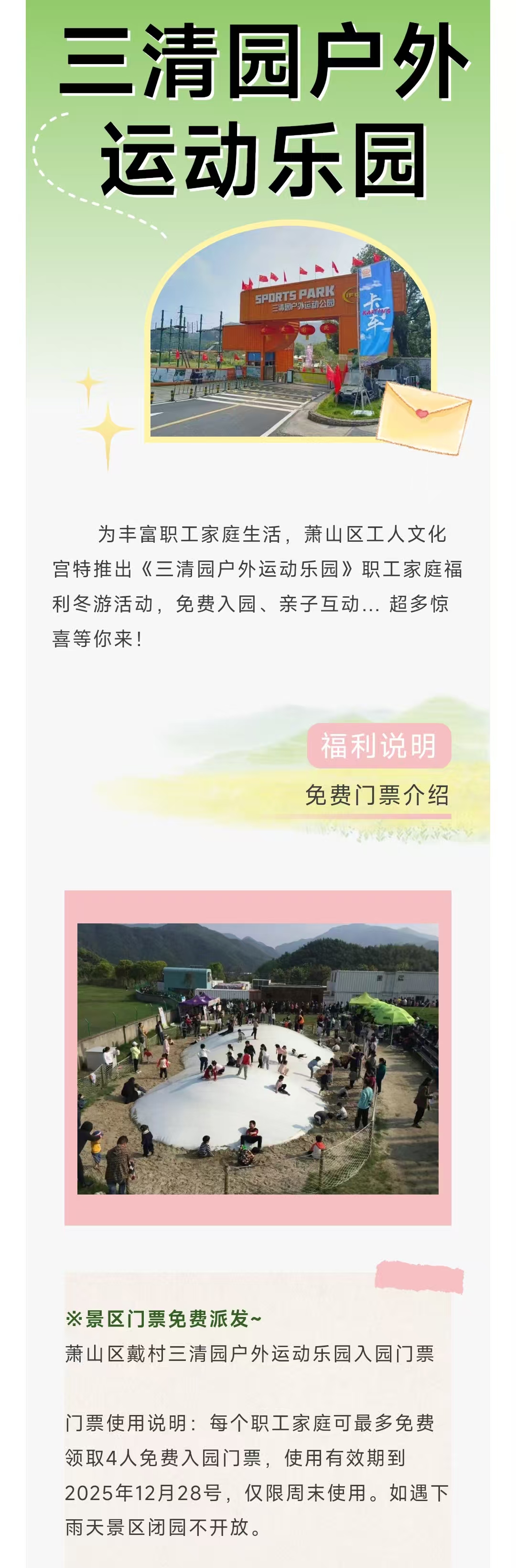 【免费门票】萧山三清园户外运动乐园家庭票