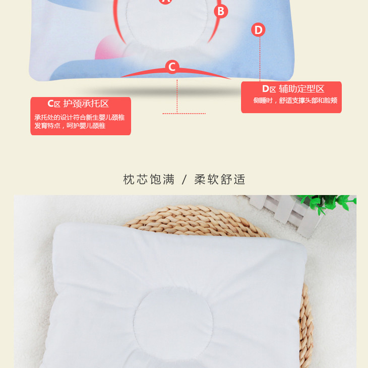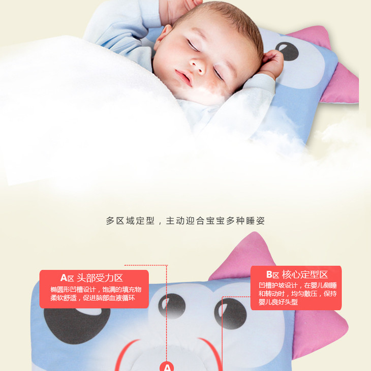 【婴儿枕】*美好宝贝 卡通婴儿防扁头枕 喷胶棉U型婴儿定型枕