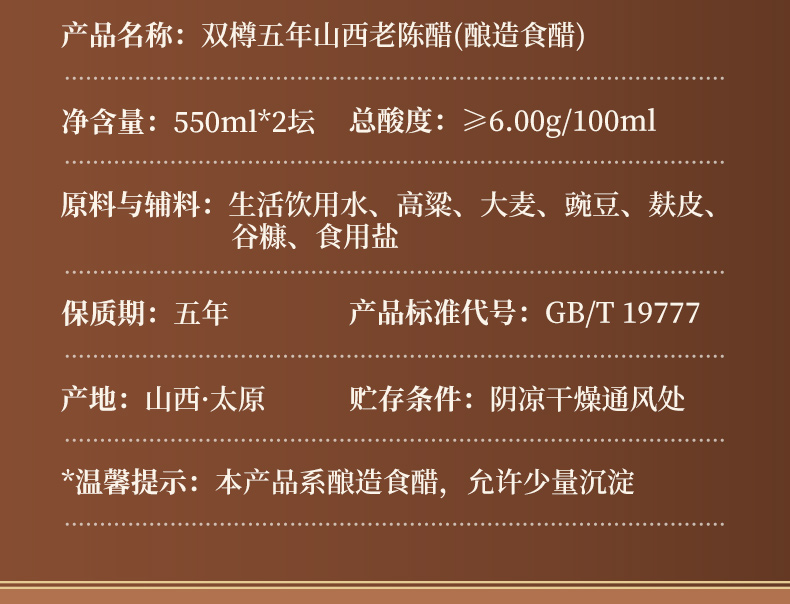 【东湖】山西老陈醋手工十年陈酿1.5L 9度酸