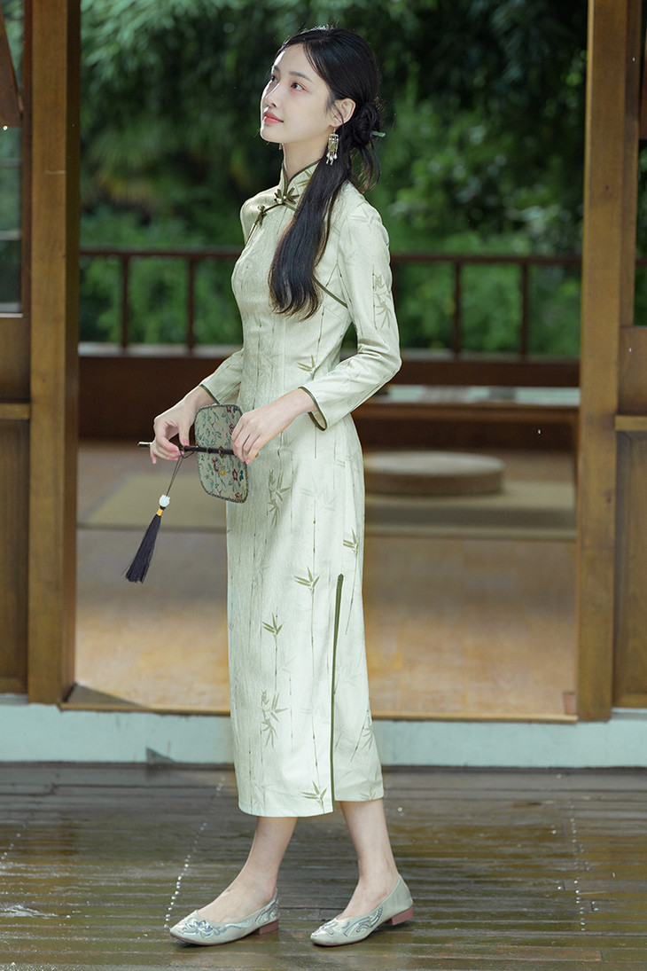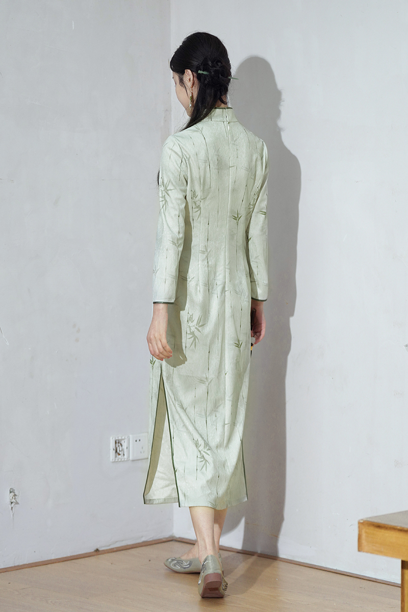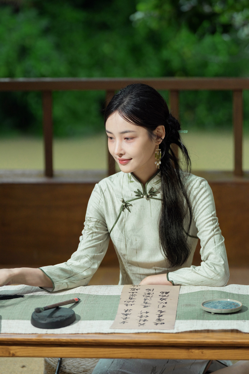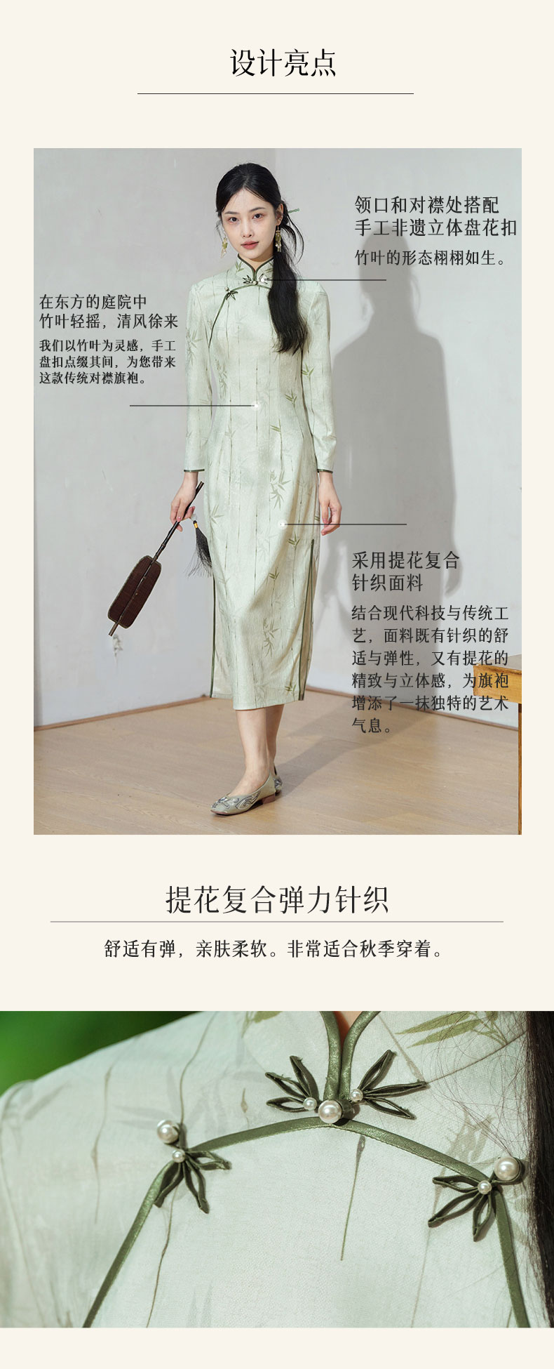 青竹旗袍宛如一幅灵动的画卷,将东方之美诠释得淋漓尽致。每一步的走动,都像是竹子在微风中轻轻摇曳,优雅而自然。