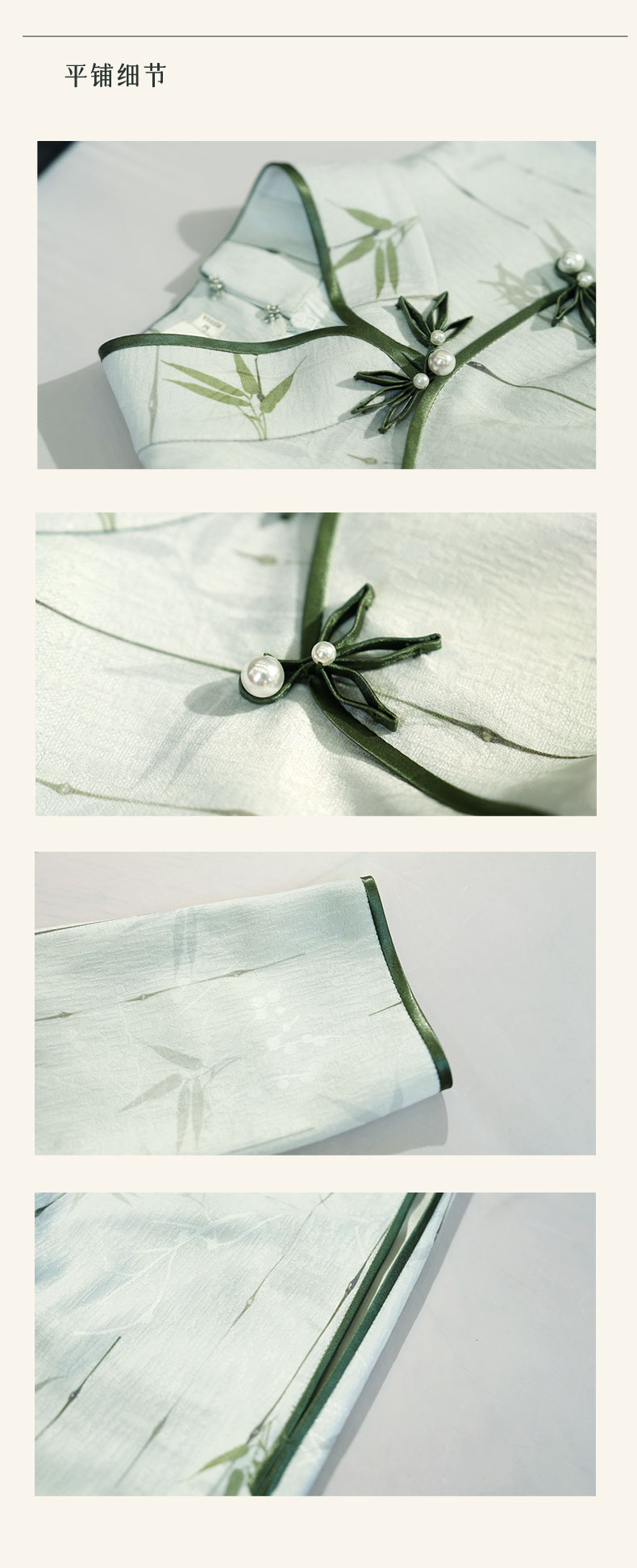 我们以竹叶为灵感,手工盘扣点缀其间,为姐妹带来这款传统对襟旗袍。