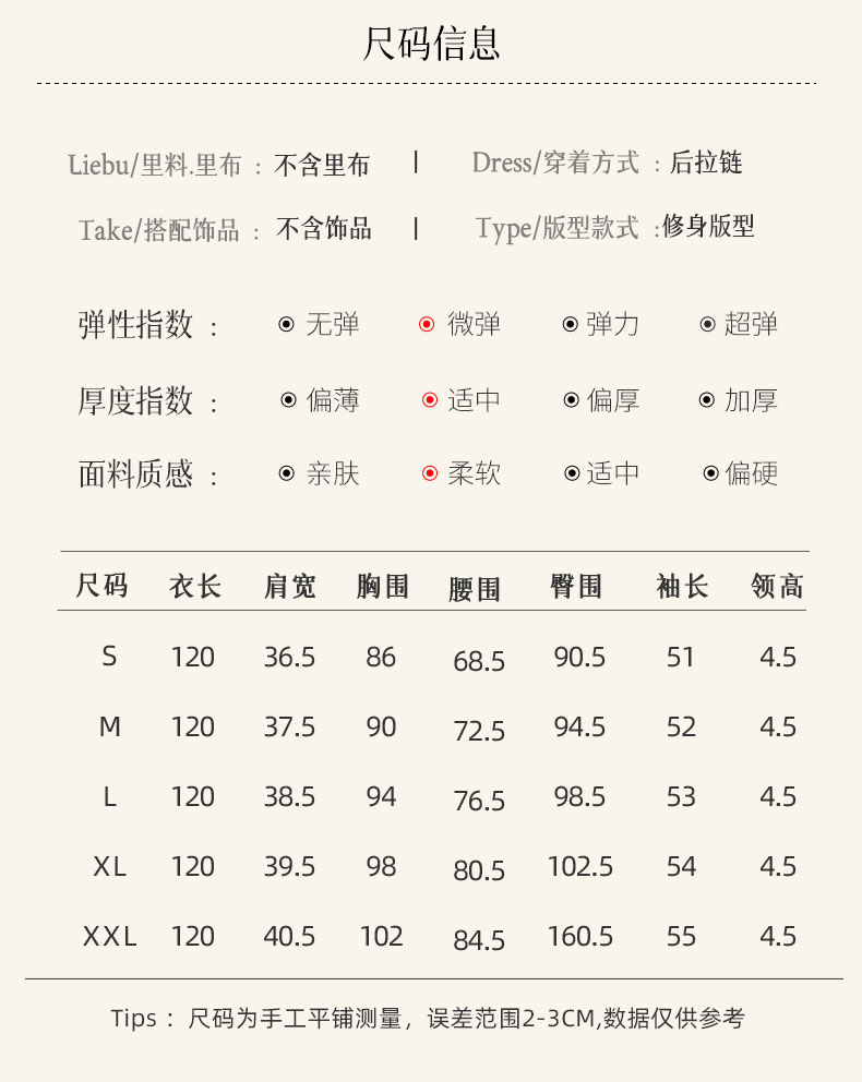 🎐衣长:120cm。领高:4.5cm。装袖九分直袖。后拉链。有弹。