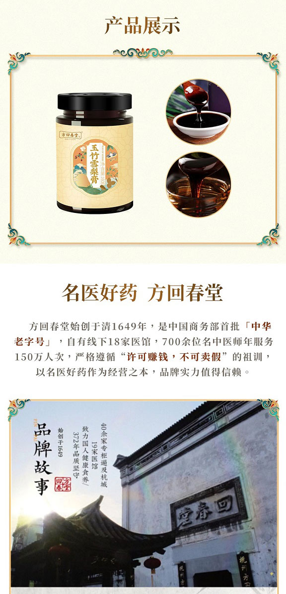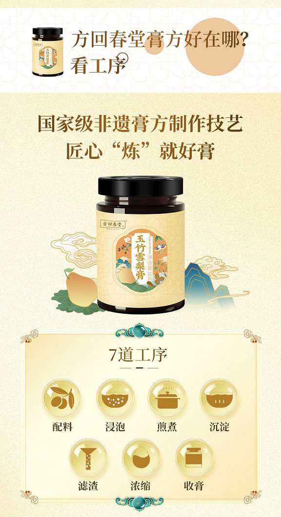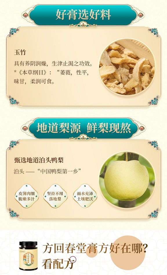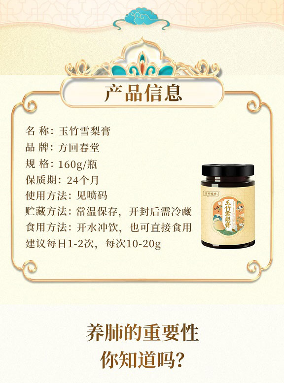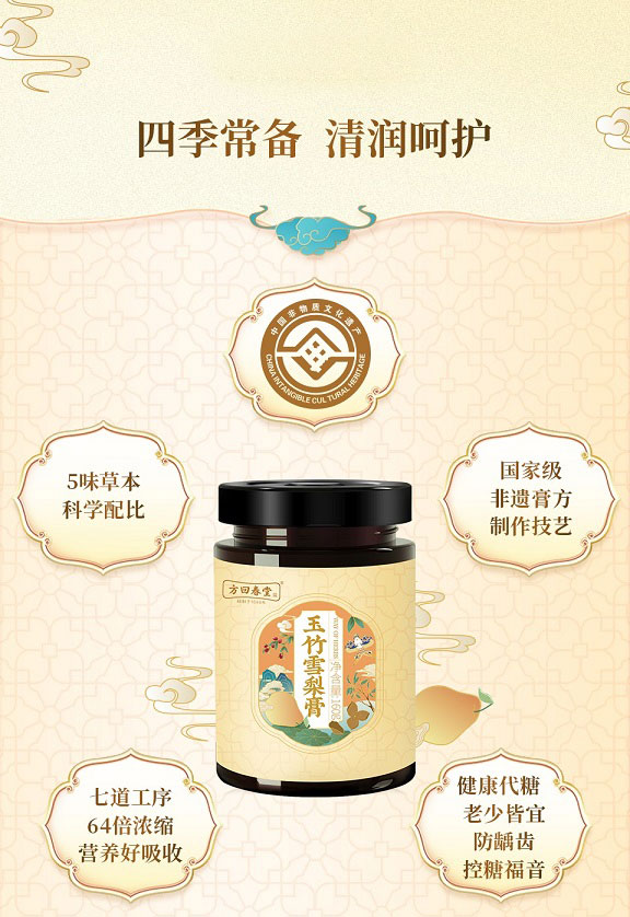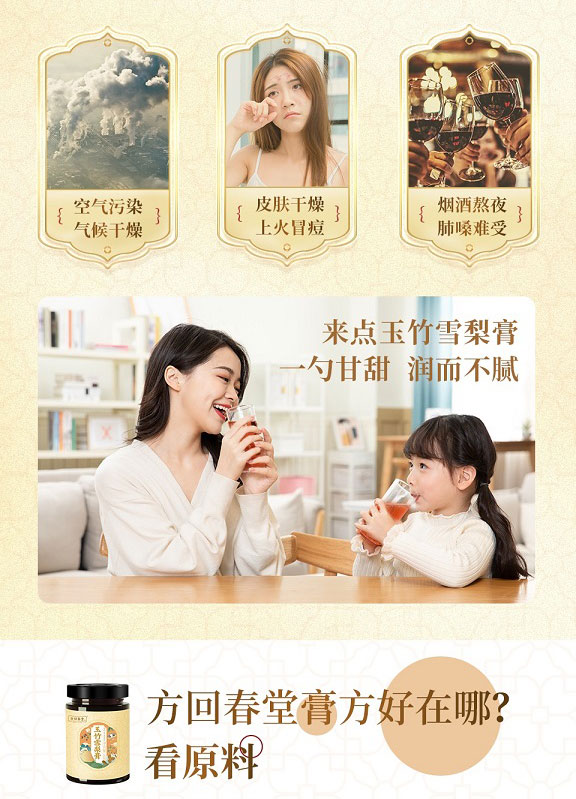 方回春堂玉竹膏秋梨膏润喉化痰肺热咽痒儿童成人咳冒痘