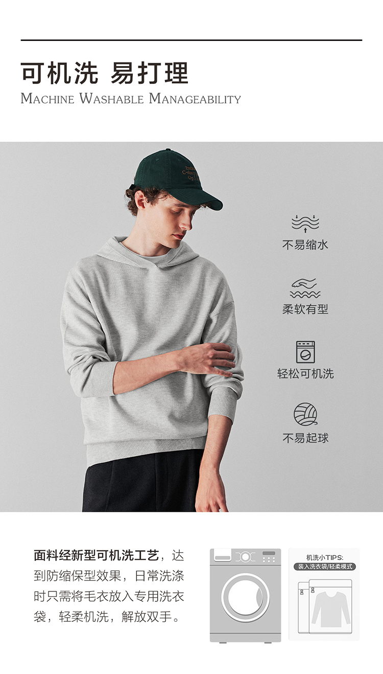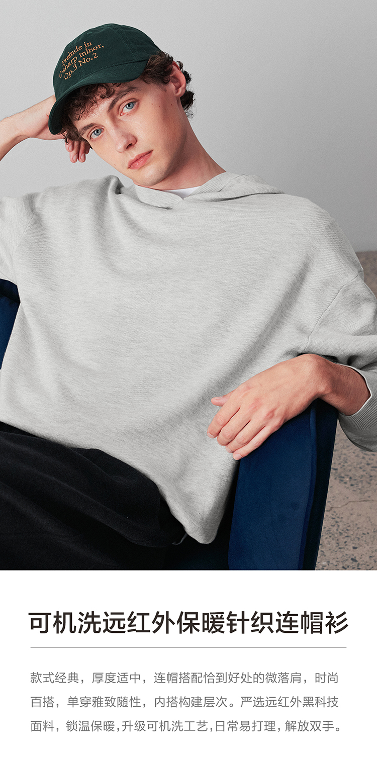 可机洗远红外保暖针织连帽衫