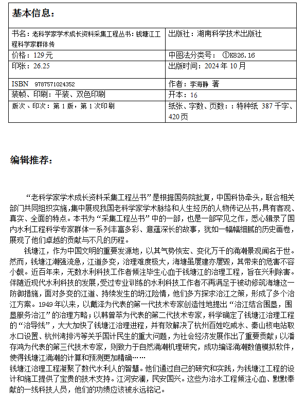 老科学家学术成长资料采集工程丛书:钱塘江工程科学家群体传 探治江之史,撰钱塘之志 访谈录