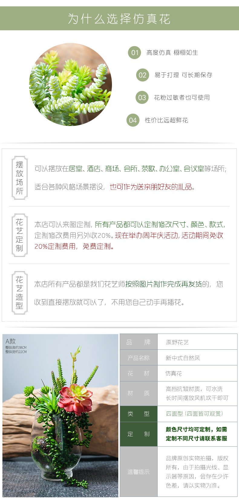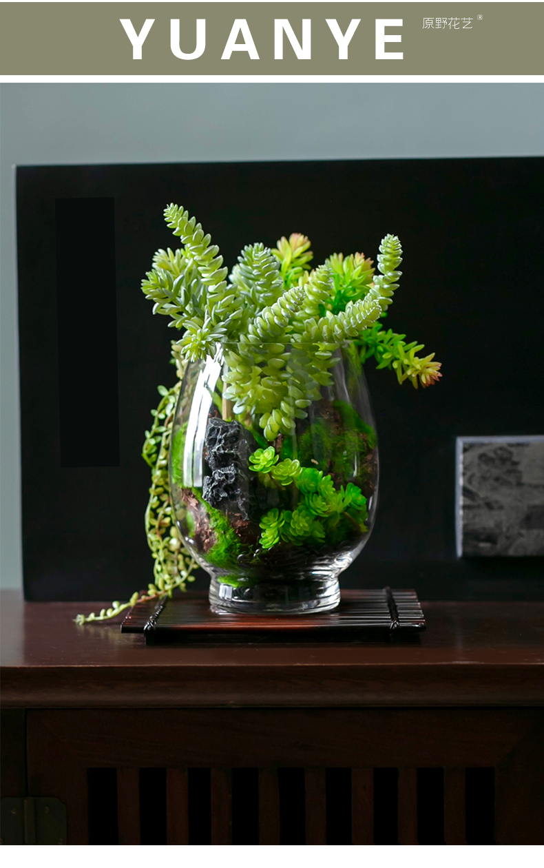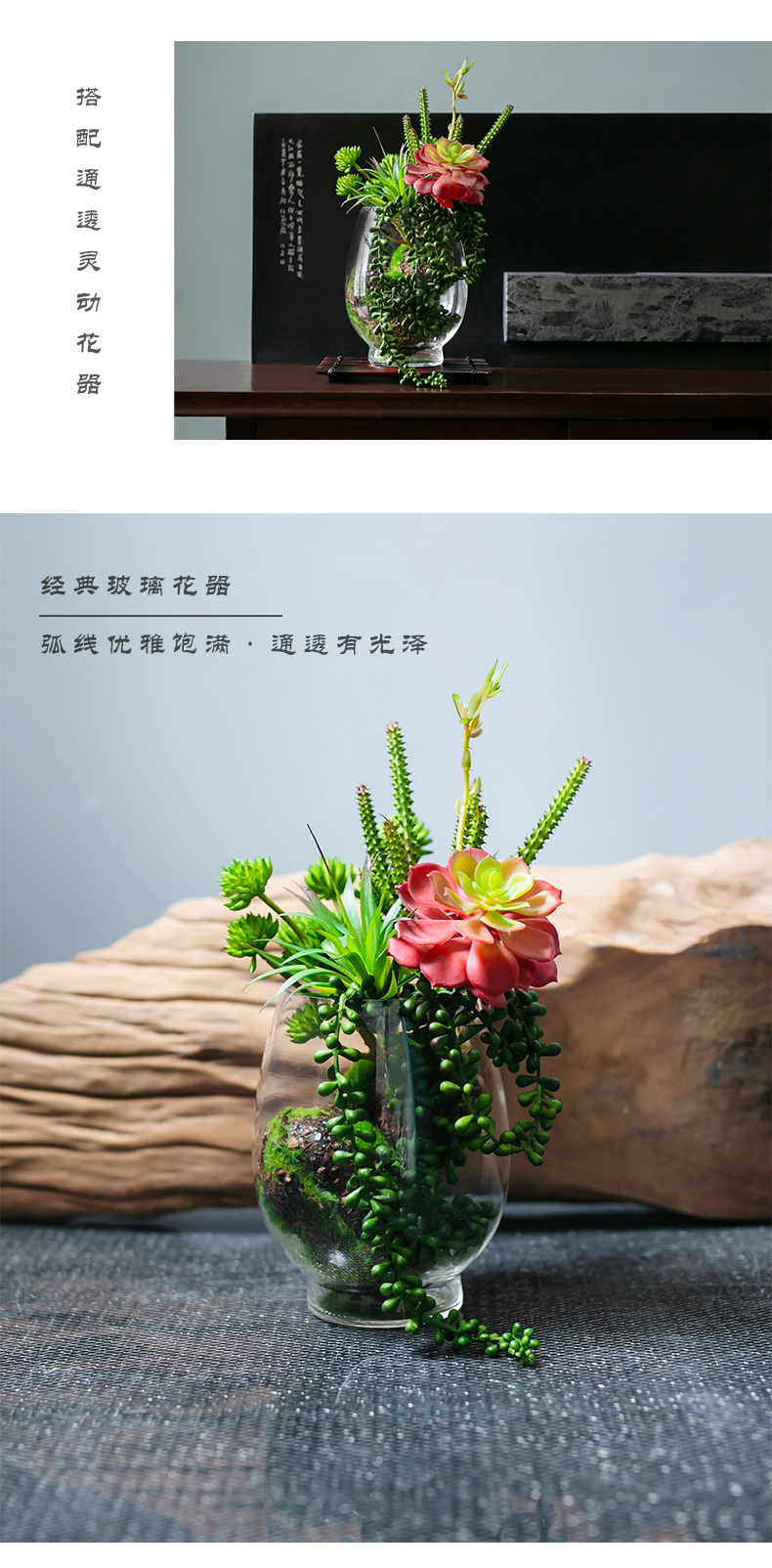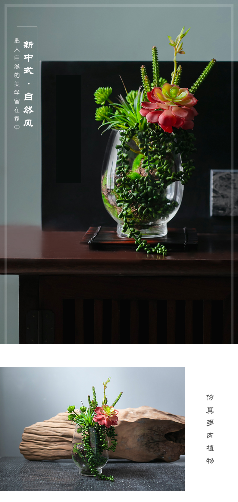 新中式酒店餐厅玄关玻璃花瓶仿真花假花客厅摆设插花花艺装饰摆件
