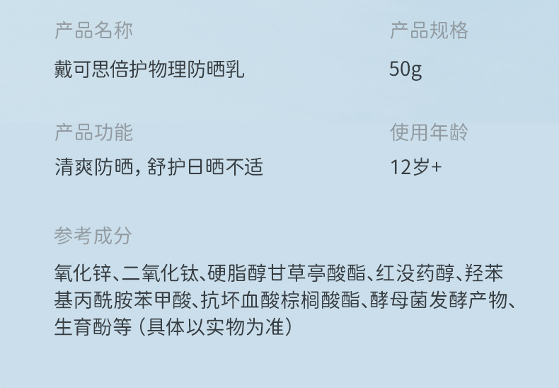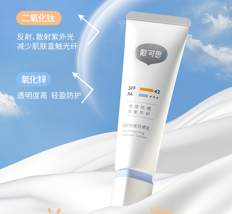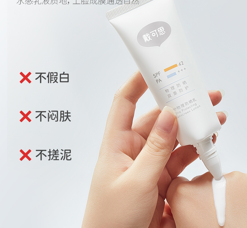 【12+】戴可思倍护纯物理隔离防晒乳2瓶 轻薄清爽不闷肤敏感肌适用 SPF42 PA+++