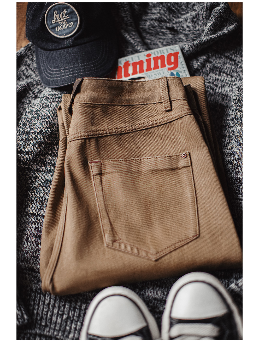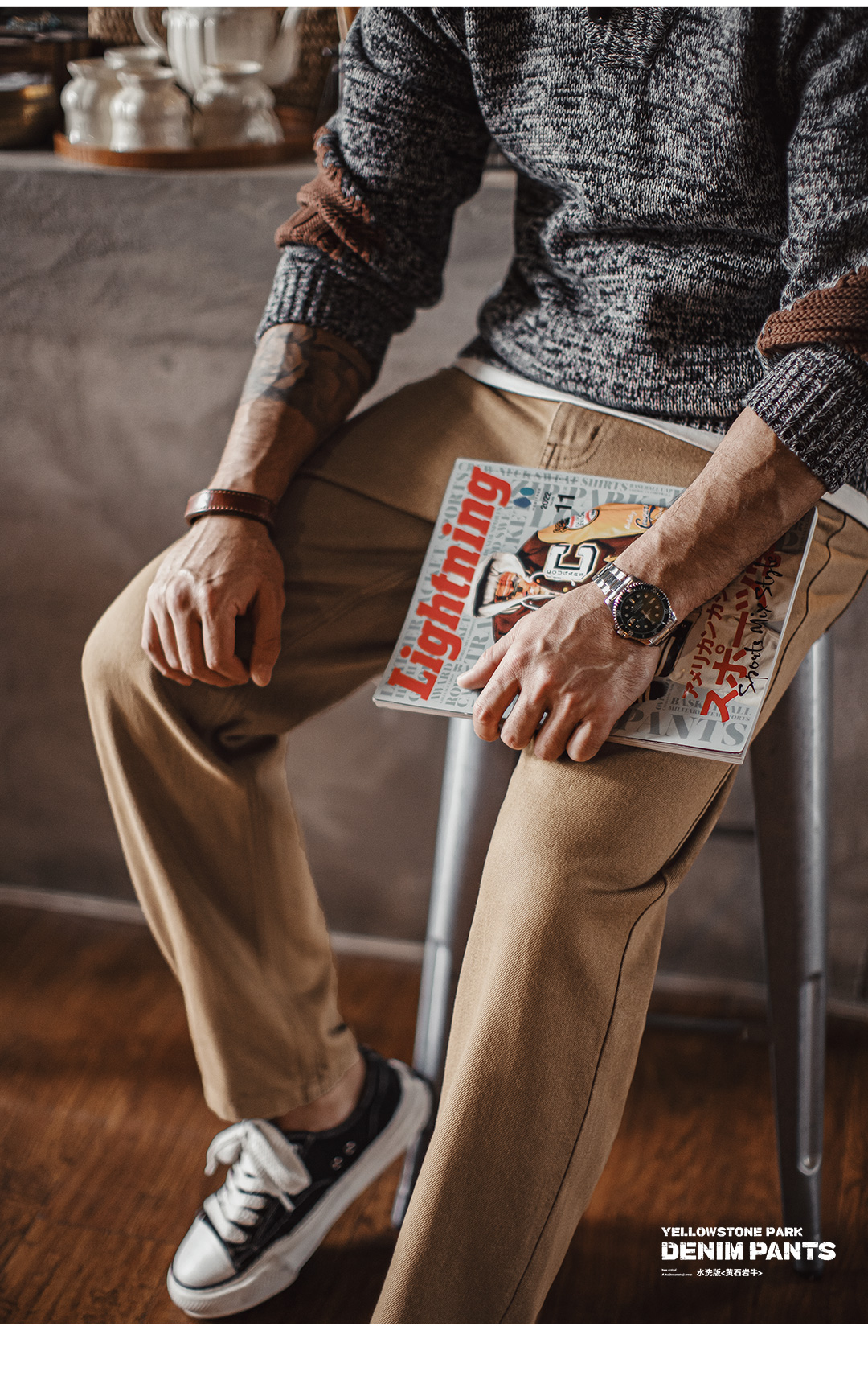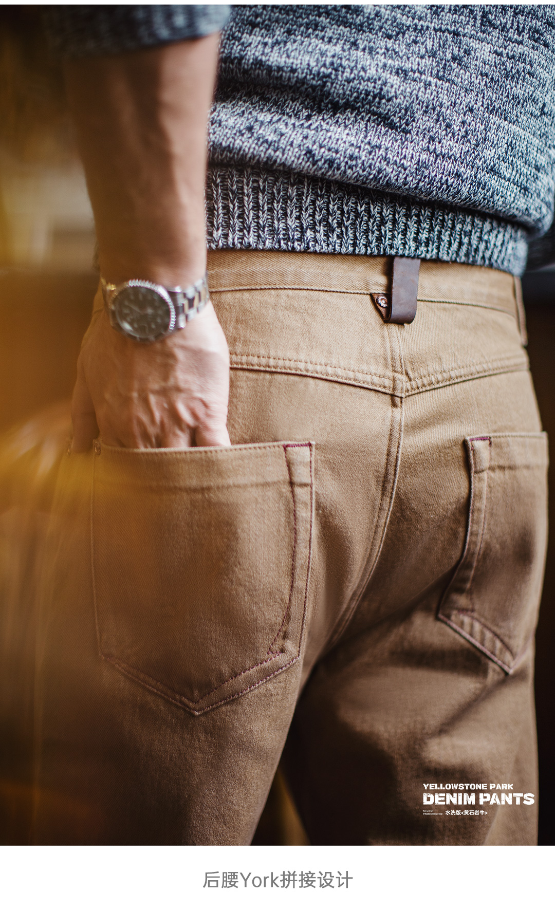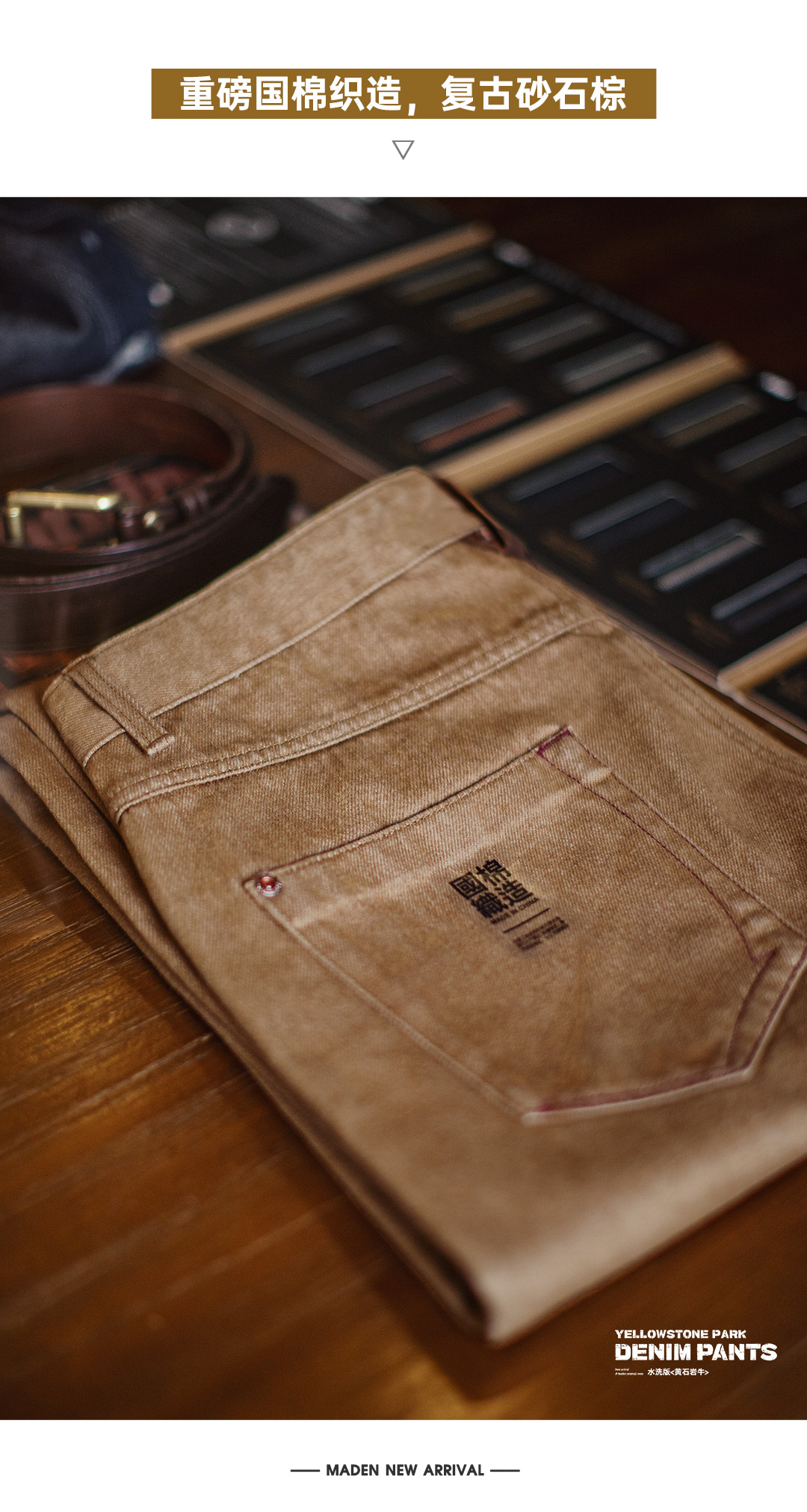 马登工装美式复古卡其色牛仔裤美拉德直筒休闲天丝莱赛尔裤子男秋