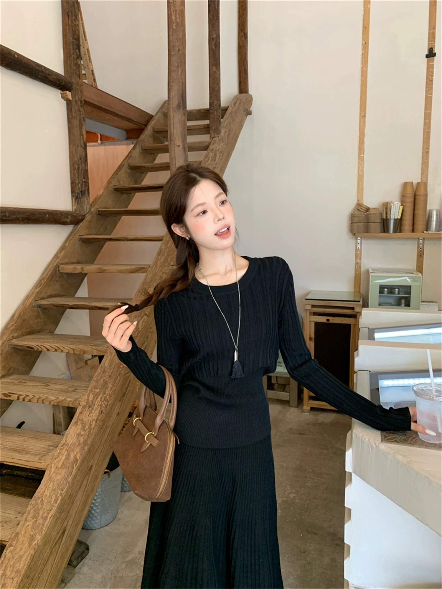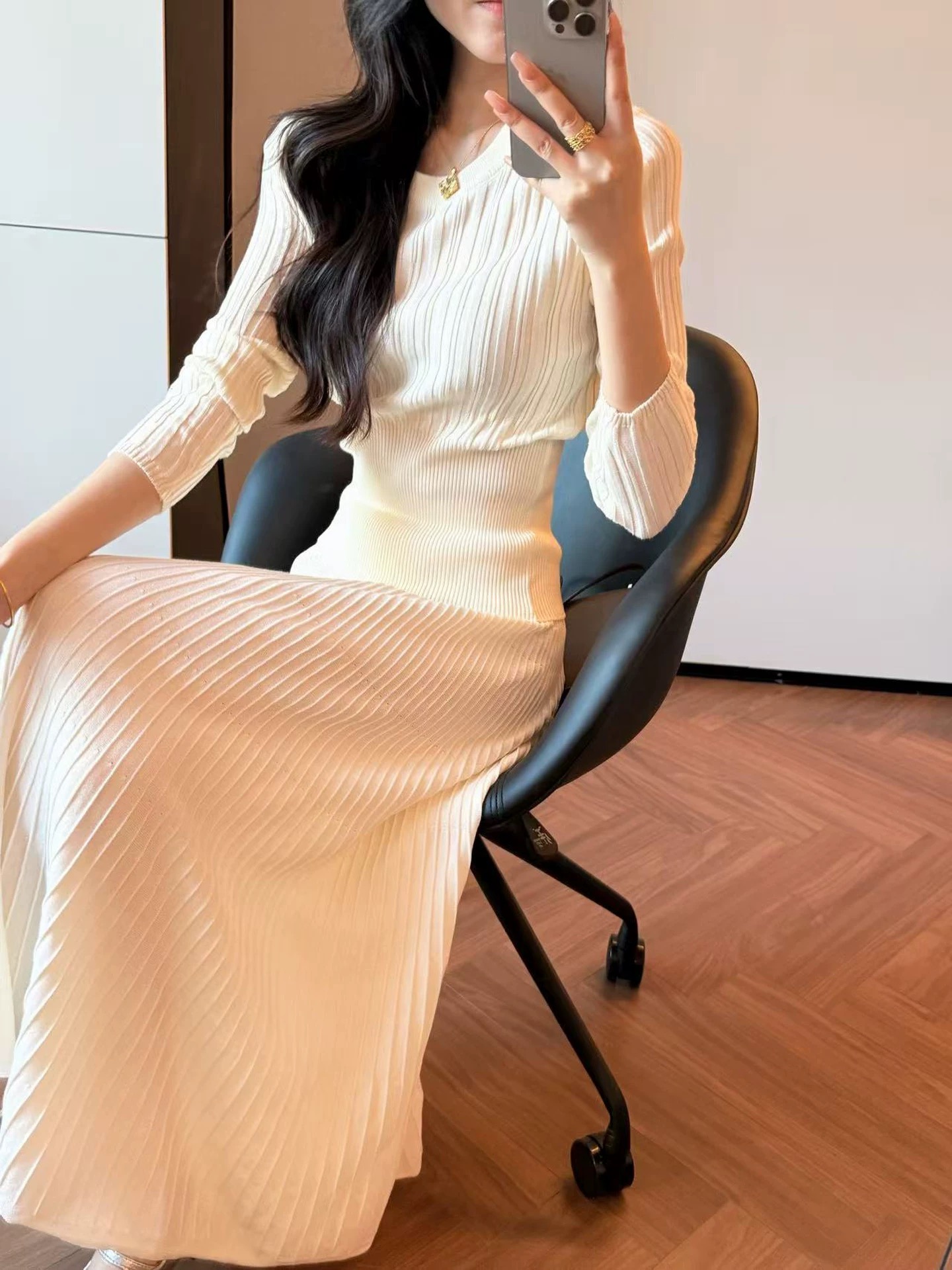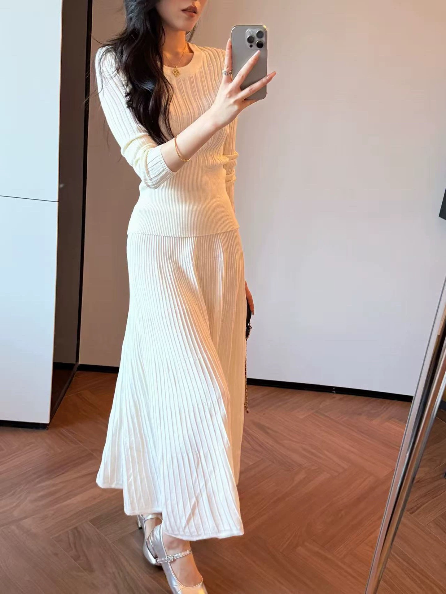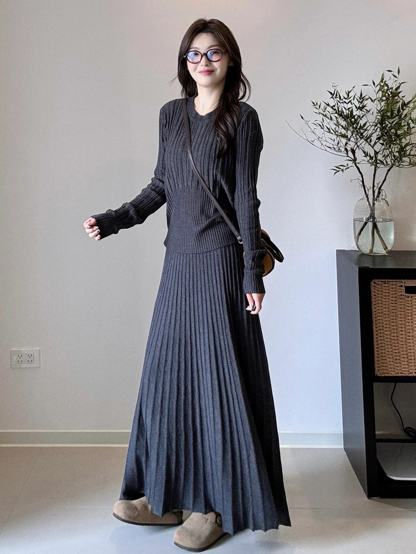 2026新款来袭!! 气质凛冬 一套搞定【梦惠妮 法式针织长裙套装】收腰设计 新颖版型 显瘦百搭 告别穿搭烦恼 百褶长裙 针织衫 时尚套装 显身材#M663