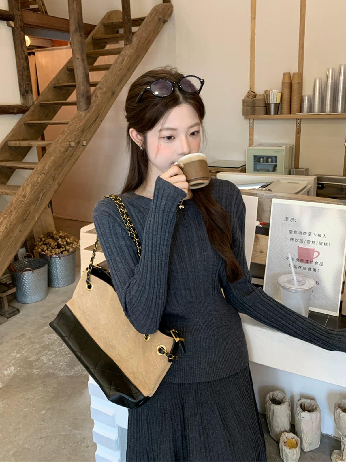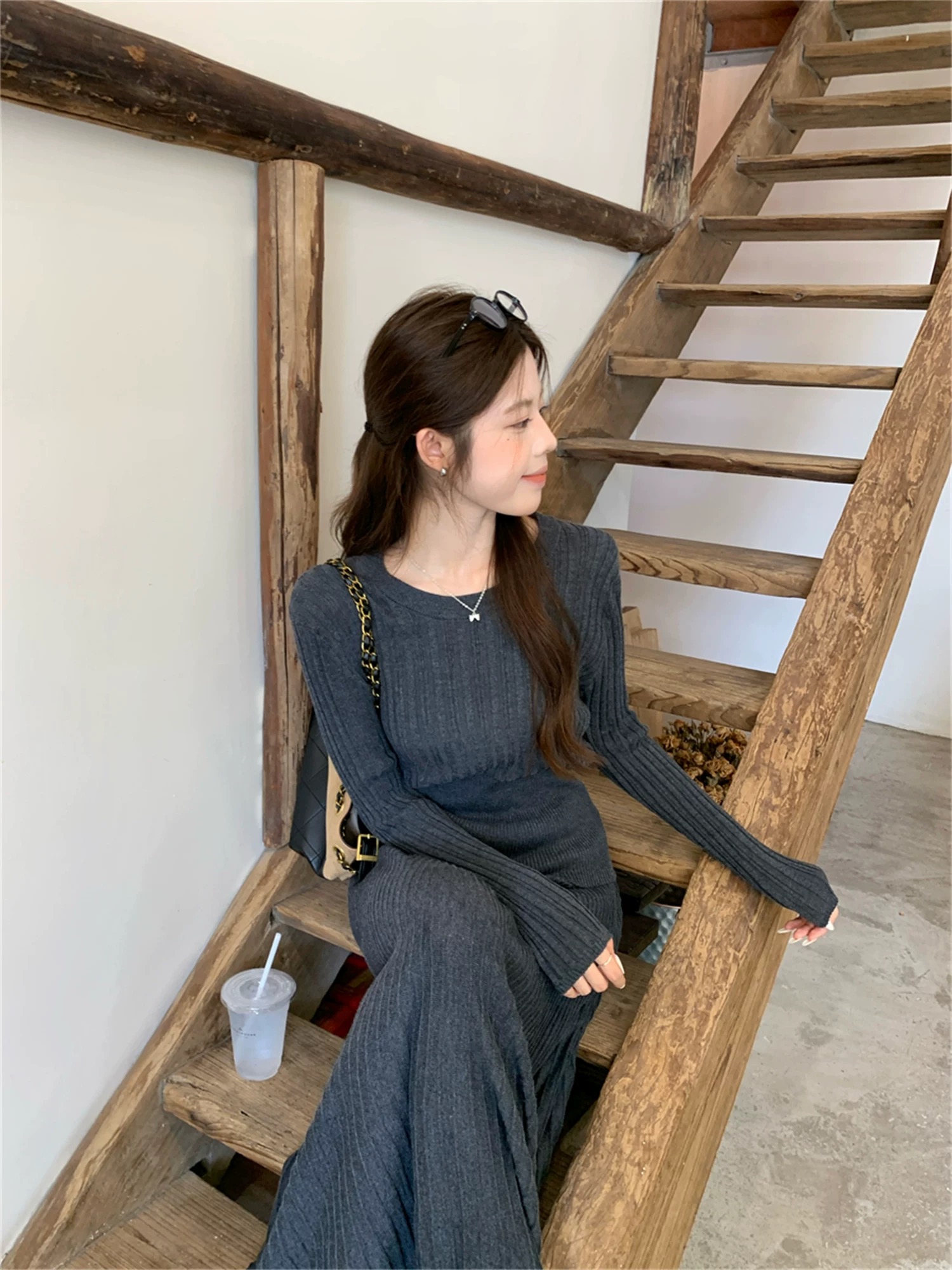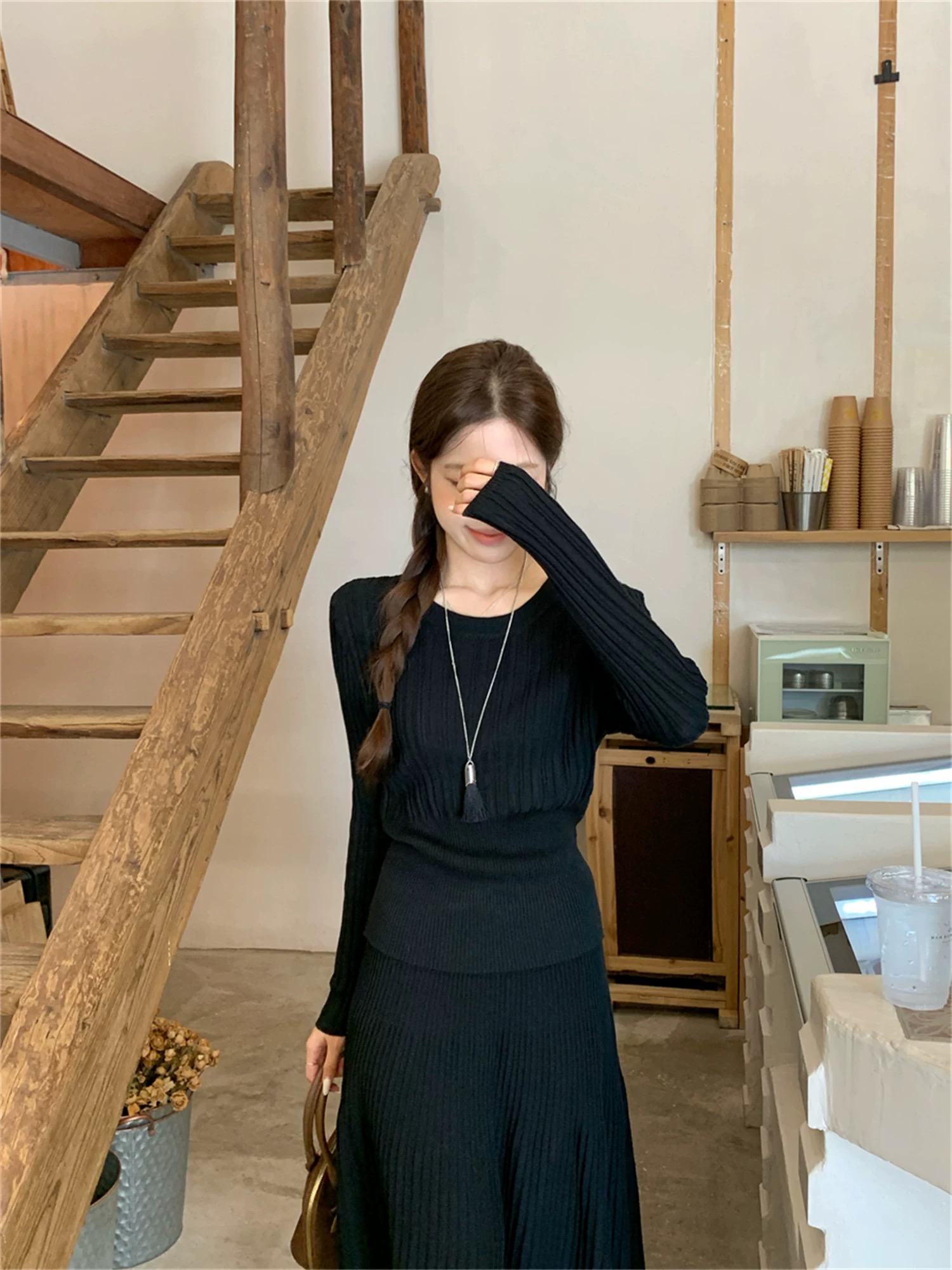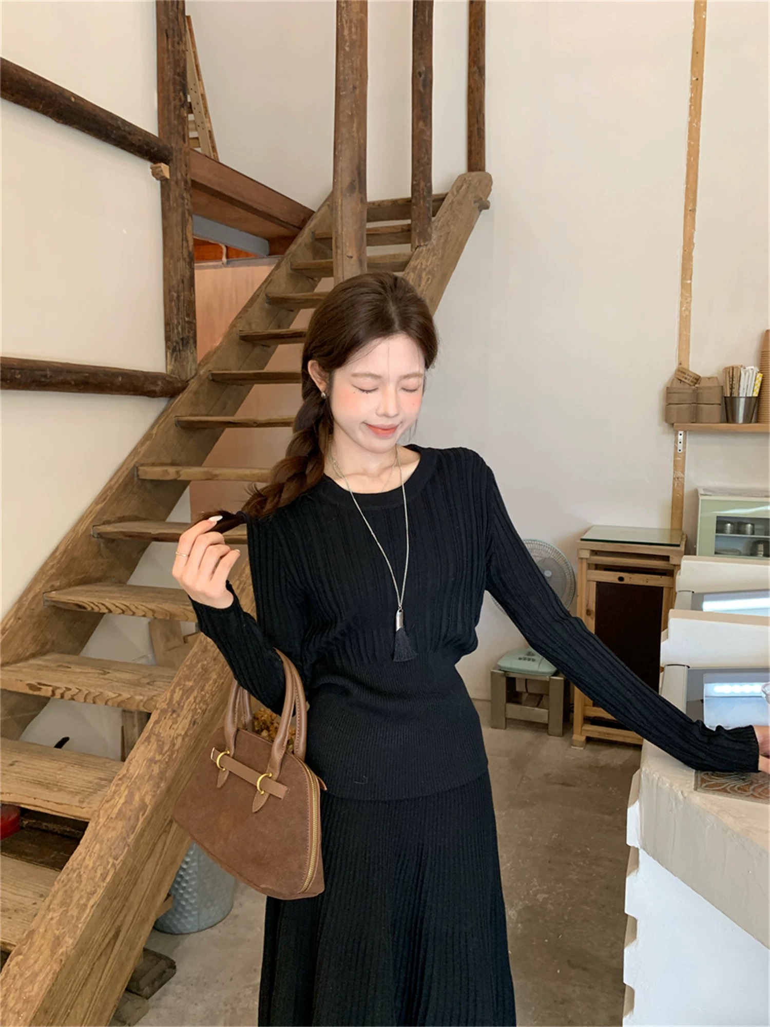 2026新款来袭!! 气质凛冬 一套搞定【梦惠妮 法式针织长裙套装】收腰设计 新颖版型 显瘦百搭 告别穿搭烦恼 百褶长裙 针织衫 时尚套装 显身材#M663