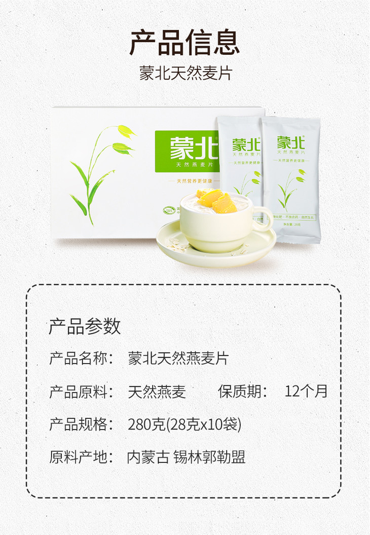 蒙北有机燕麦片 无蔗糖添加,天然营养又健康(每盒28g*10包)