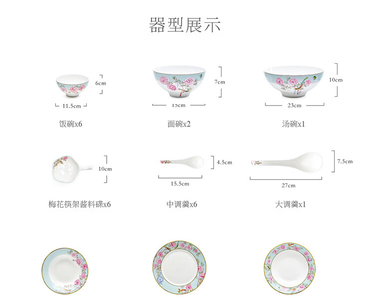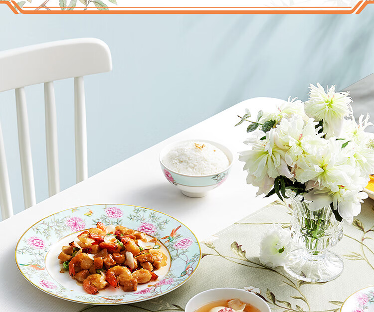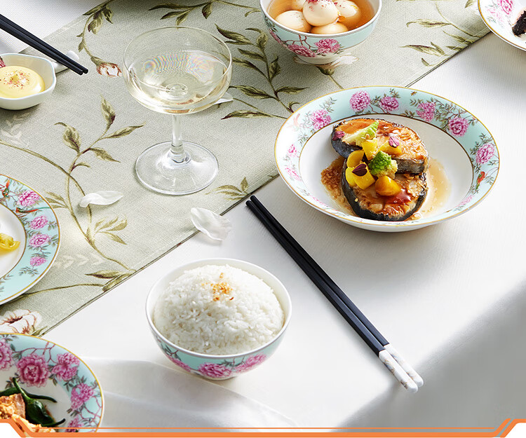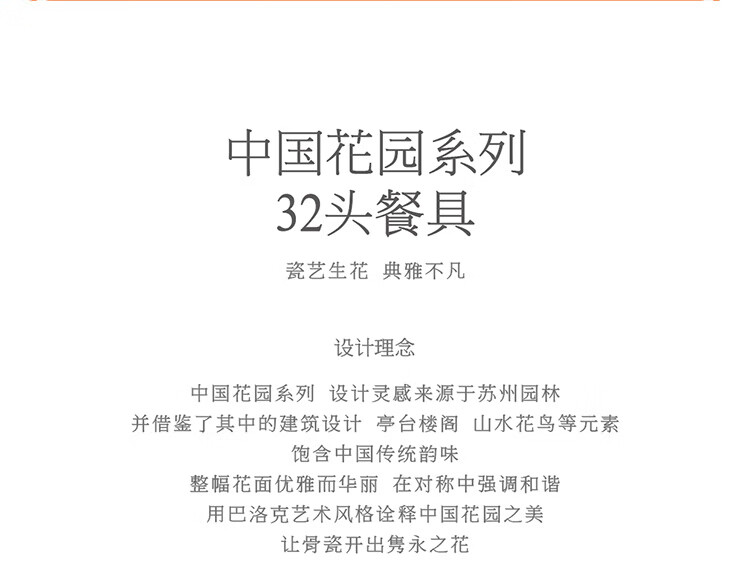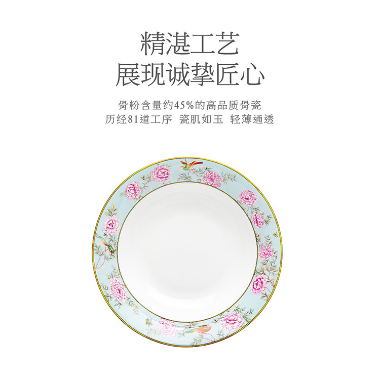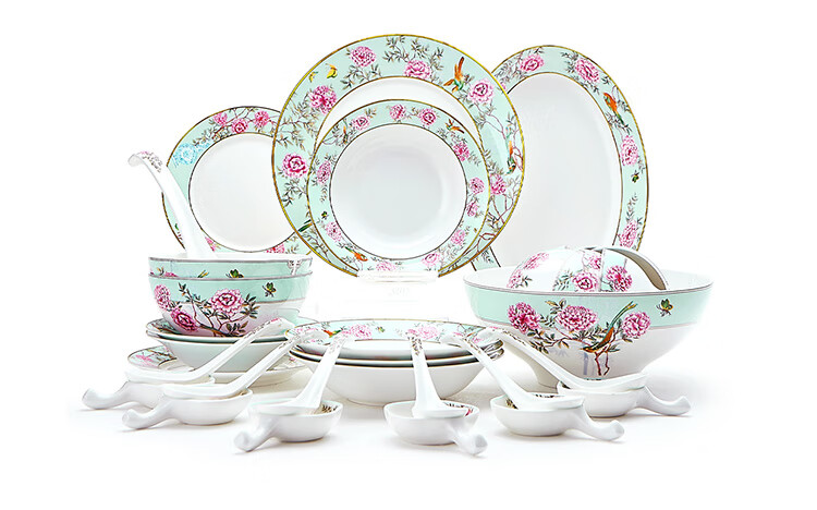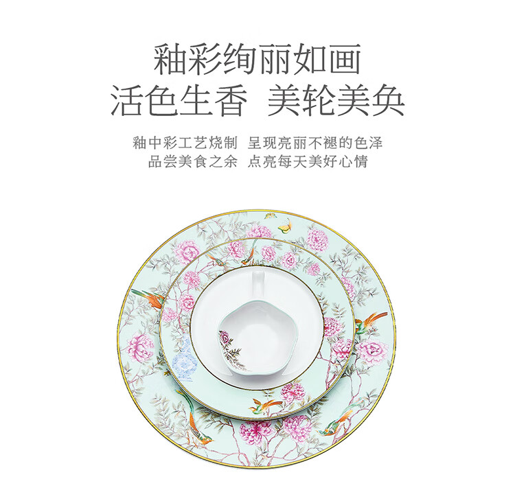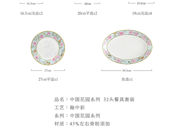 【6F】玛戈隆特 骨瓷餐具套装碗碟套装中式轻奢家用碗盘碟6人份32头中国花园国补