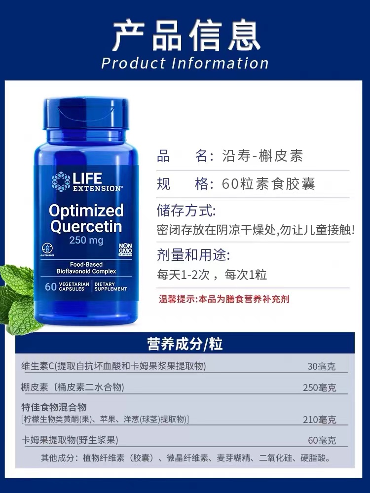 沿寿LIFE EXTENSION 优化槲皮素 60粒
