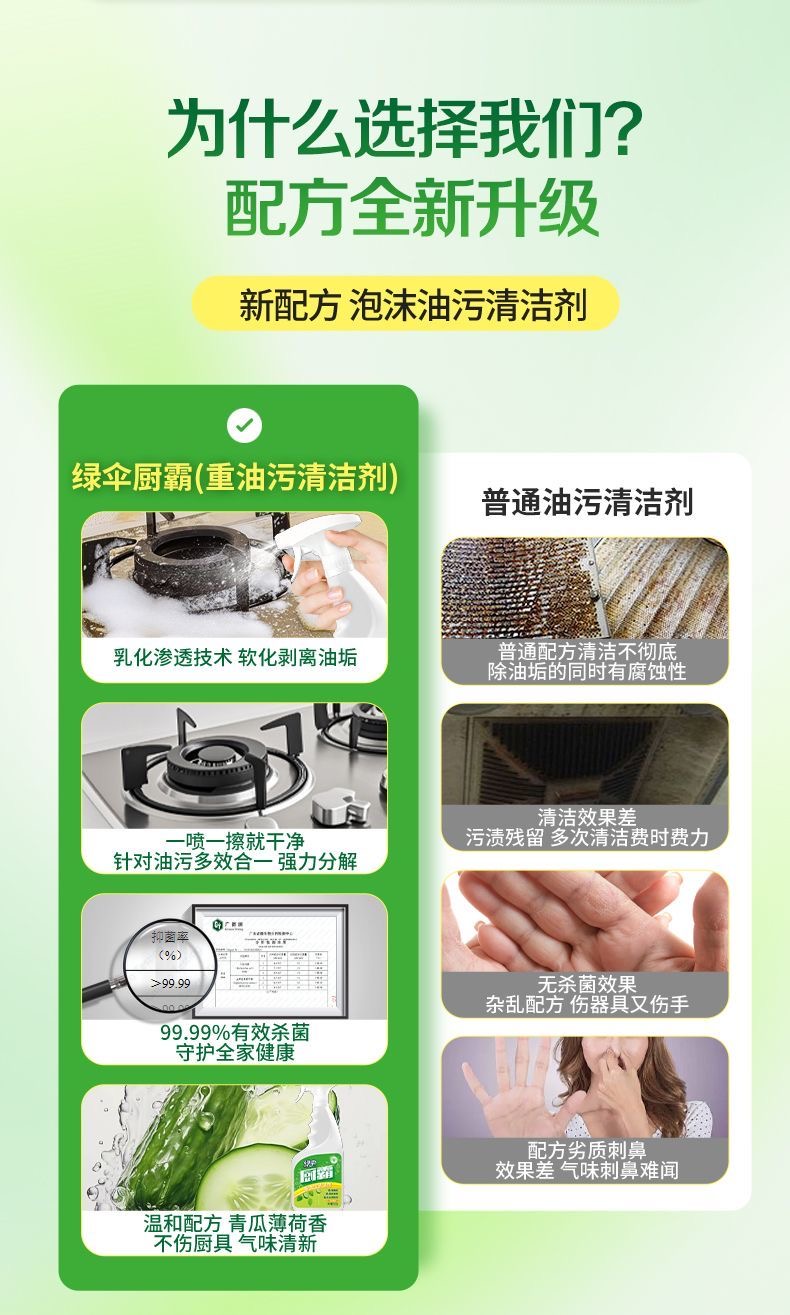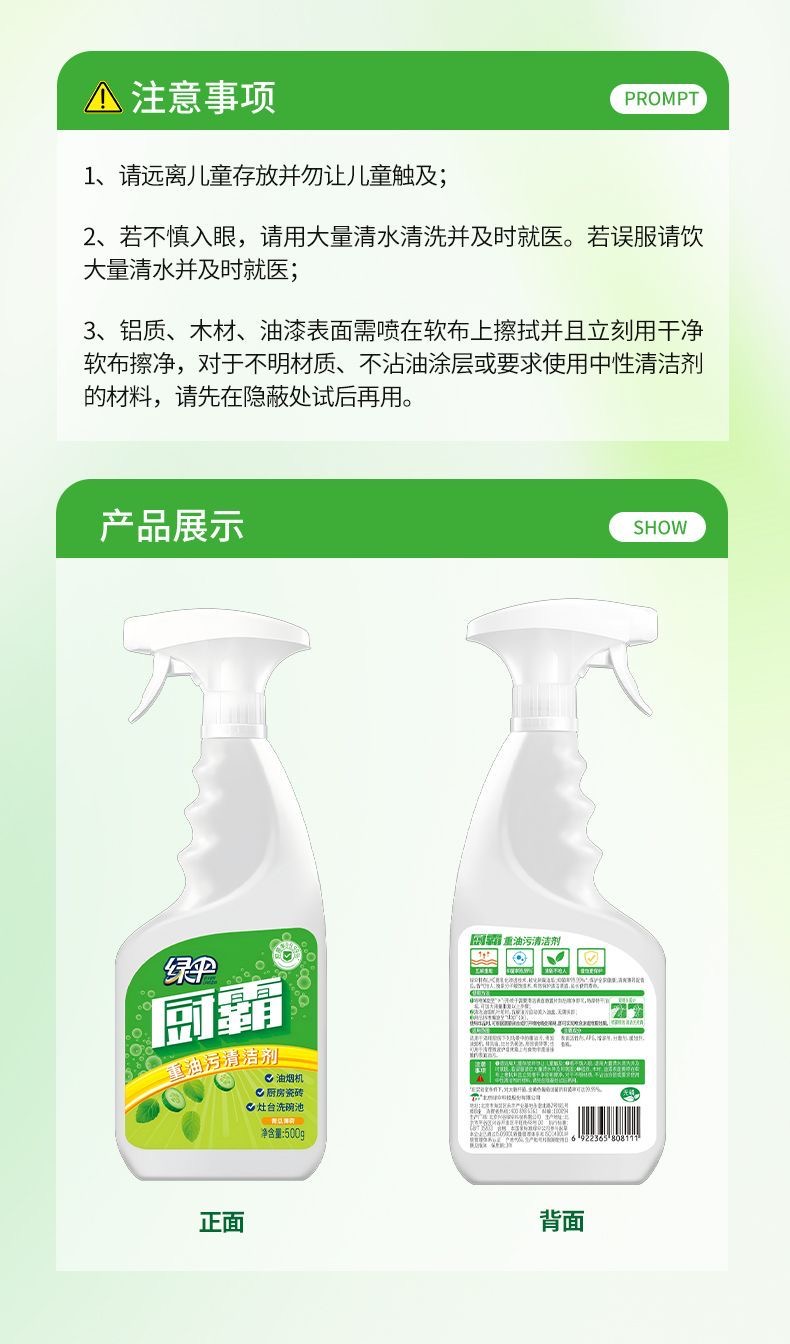 绿伞厨霸清洁剂强力去油污去重油除菌厨房卫生间瓷砖阳台厨房重油污克星