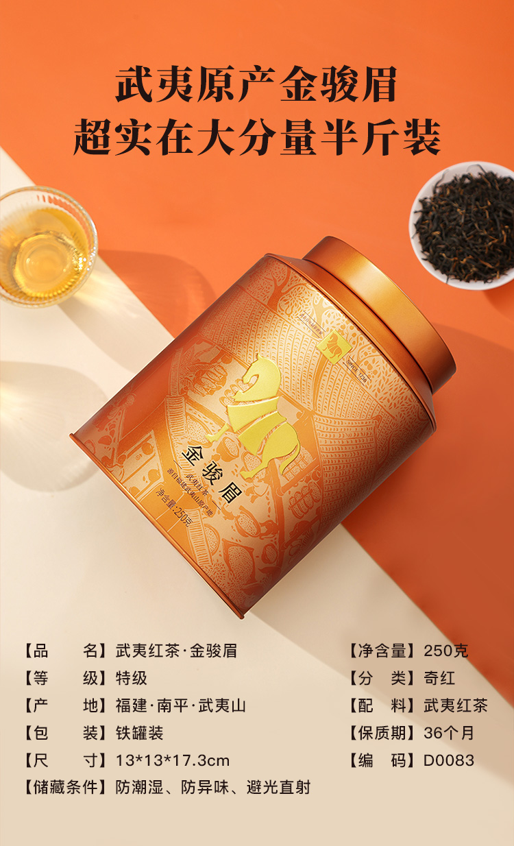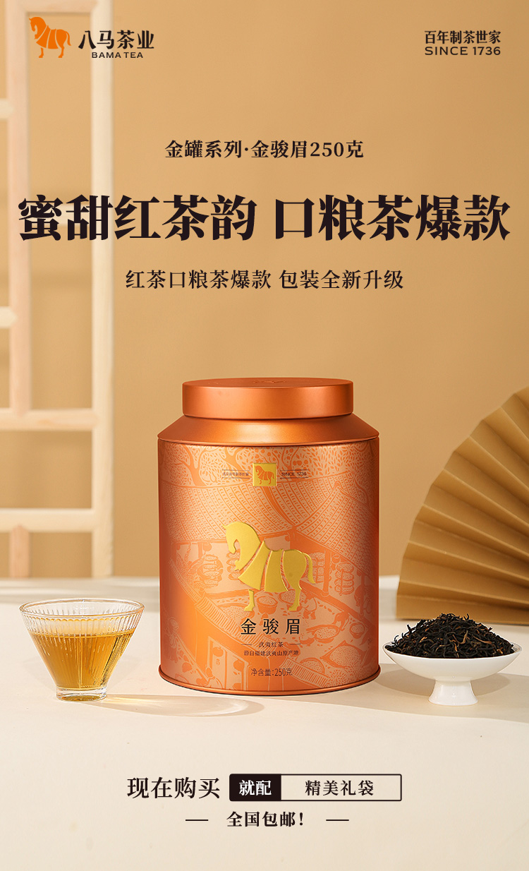 八马茶业|武夷红茶金骏眉茶叶圆罐装250g