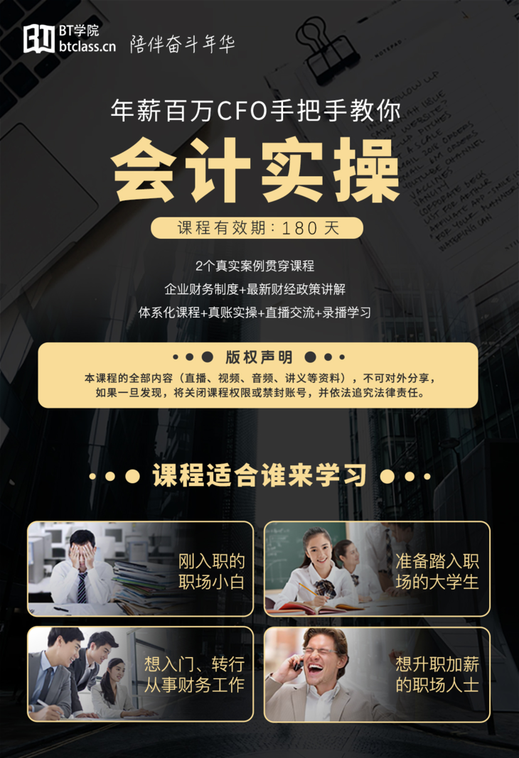 请务必关注微信公众号【BT学院才鲸】,接受上课通知和添加会计实操小助手。