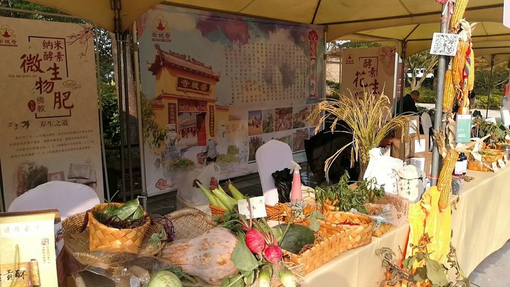 1,纳米酵素微生物肥在江苏省宿迁市泗阳县学城寺开花结果!特约代表寺院参加一年一度的素食文化展!
