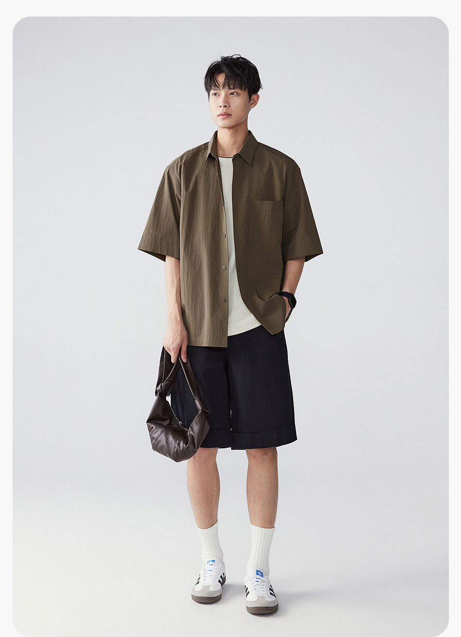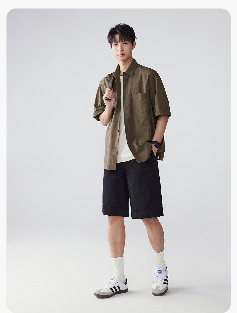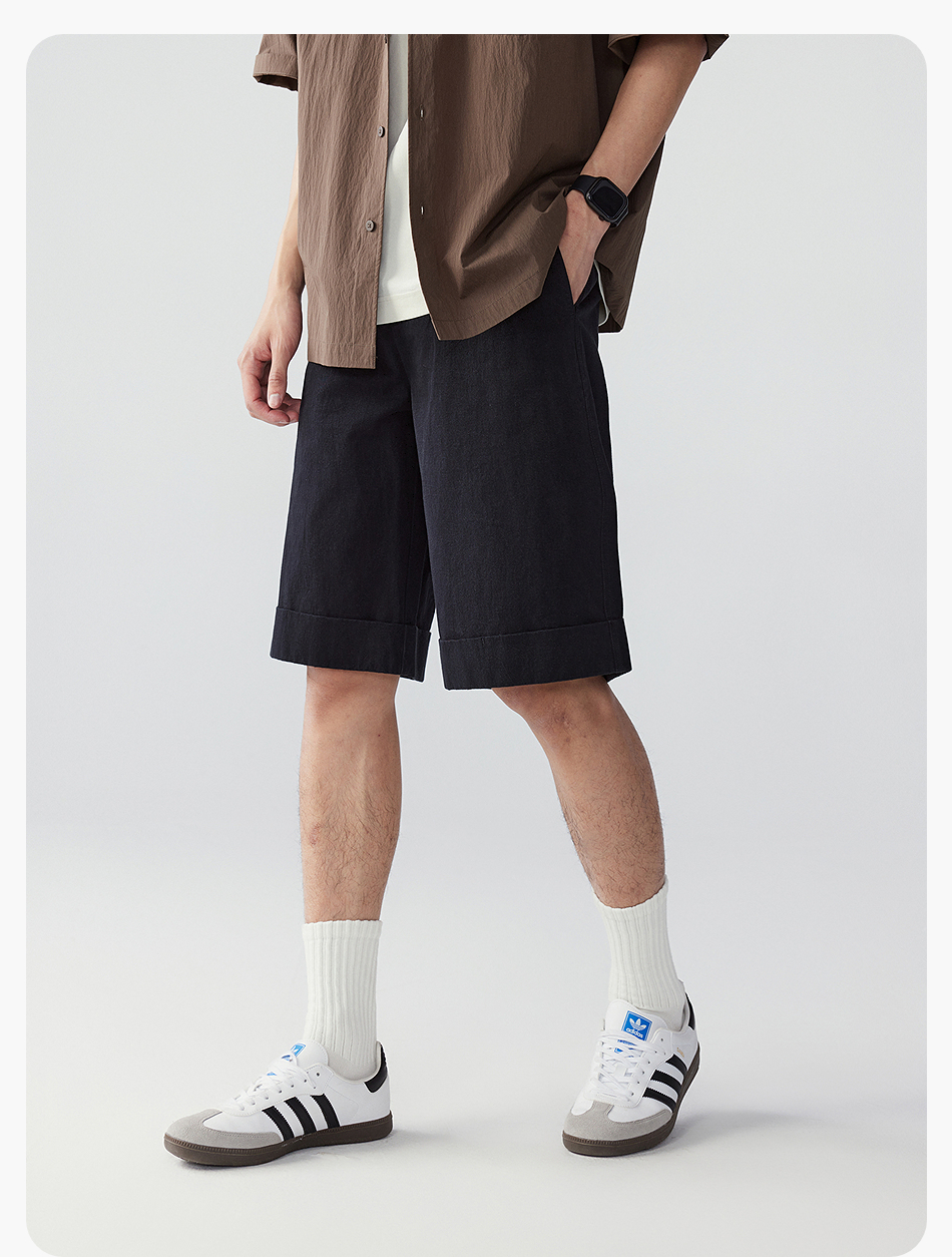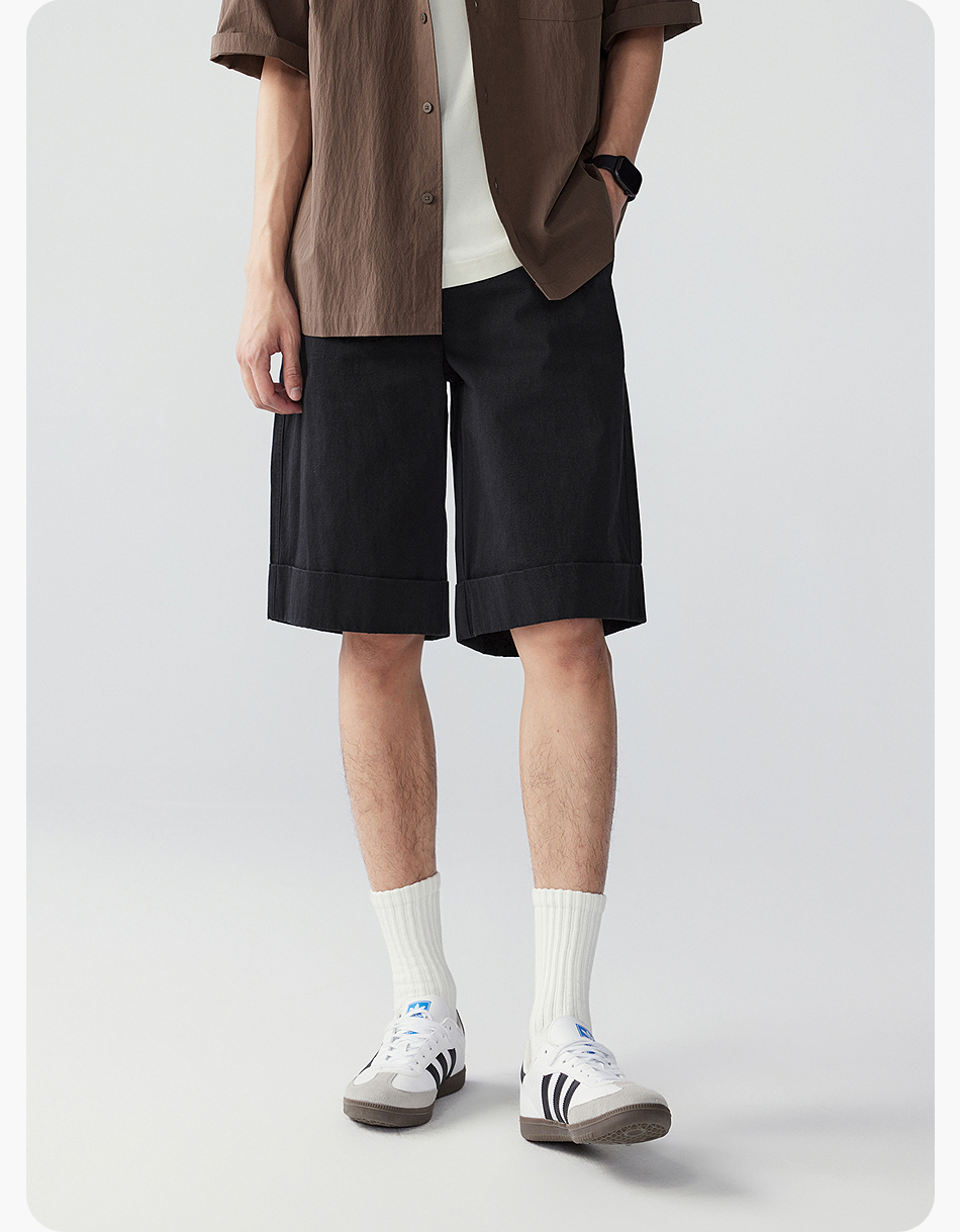 棉仓353818011-宽松直筒全棉盐缩休闲短裤