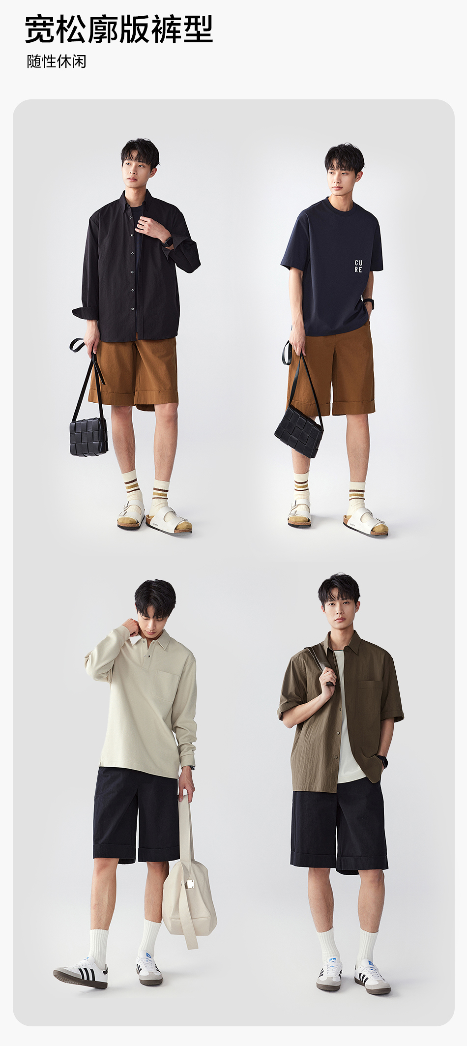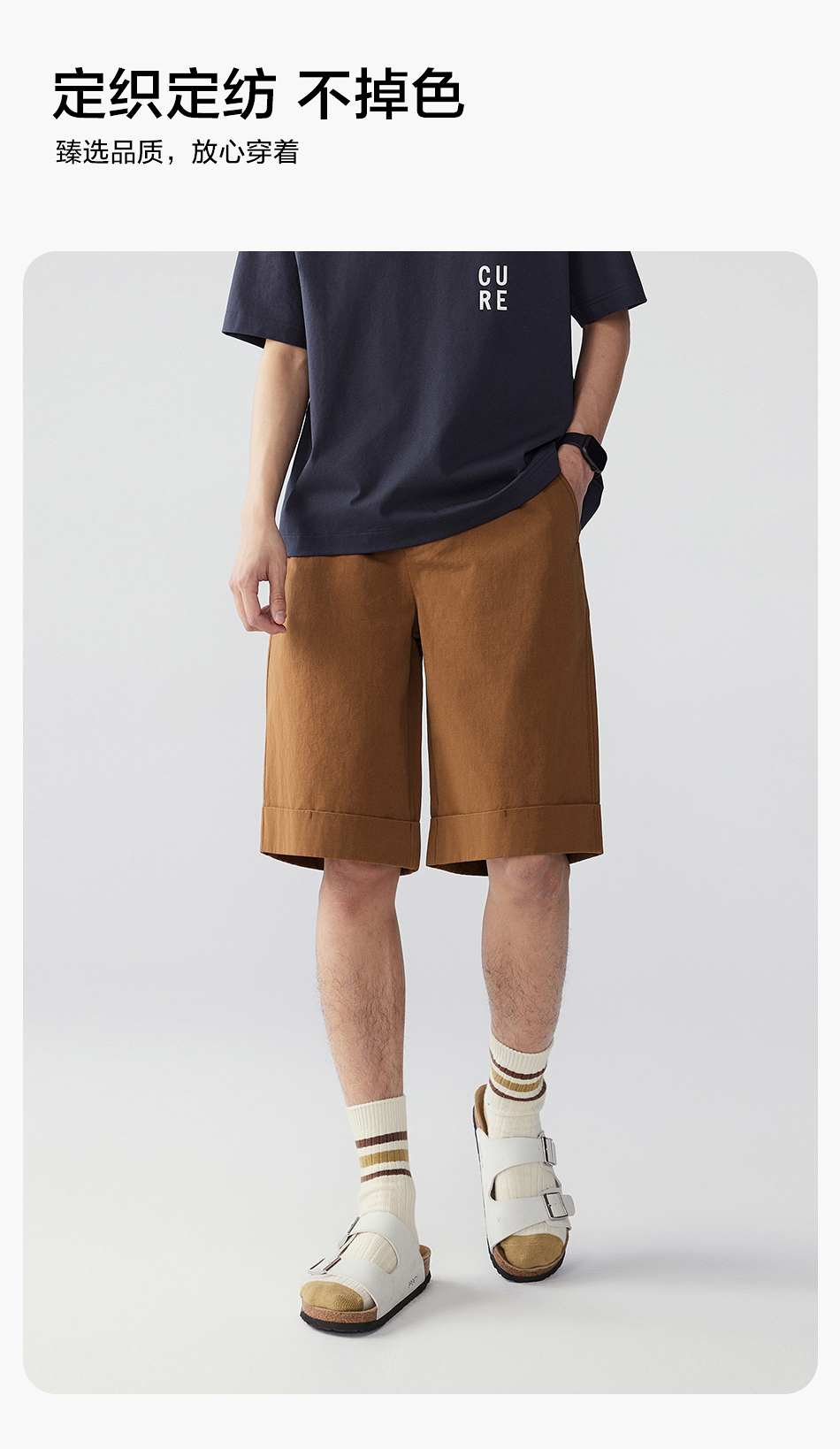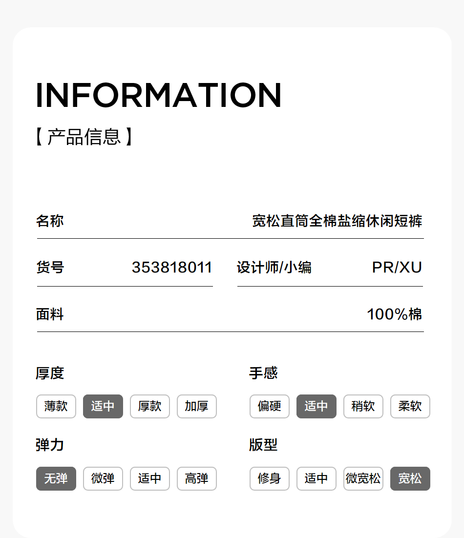 棉仓353818011-宽松直筒全棉盐缩休闲短裤