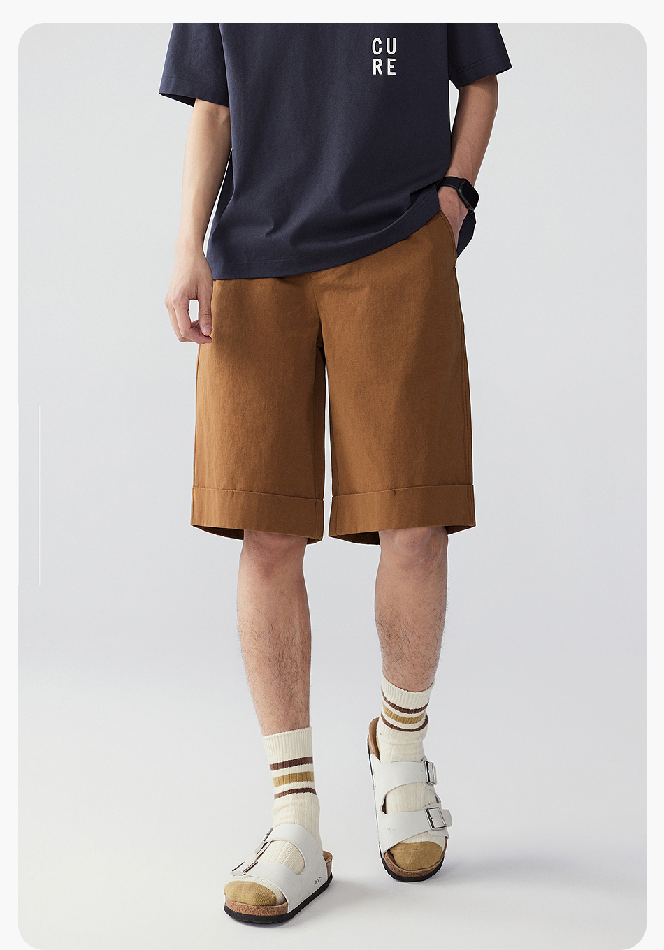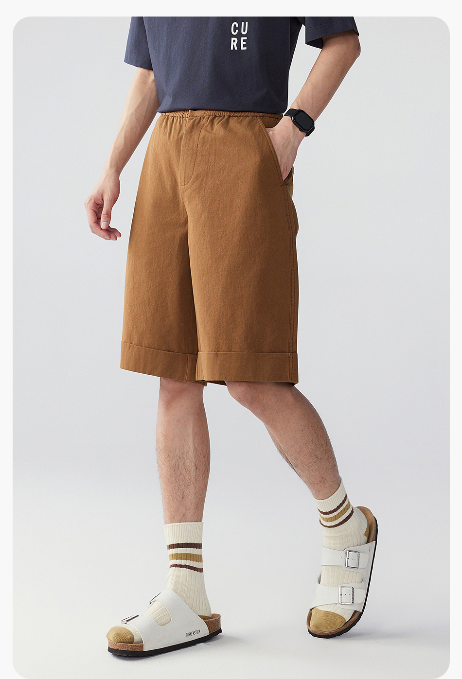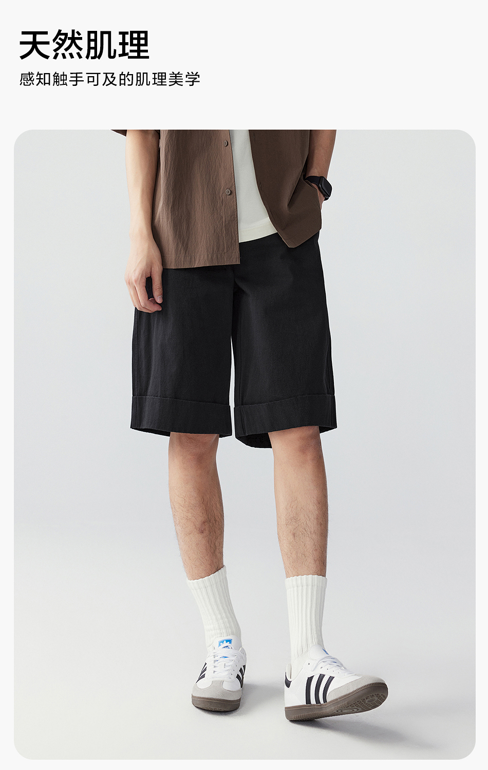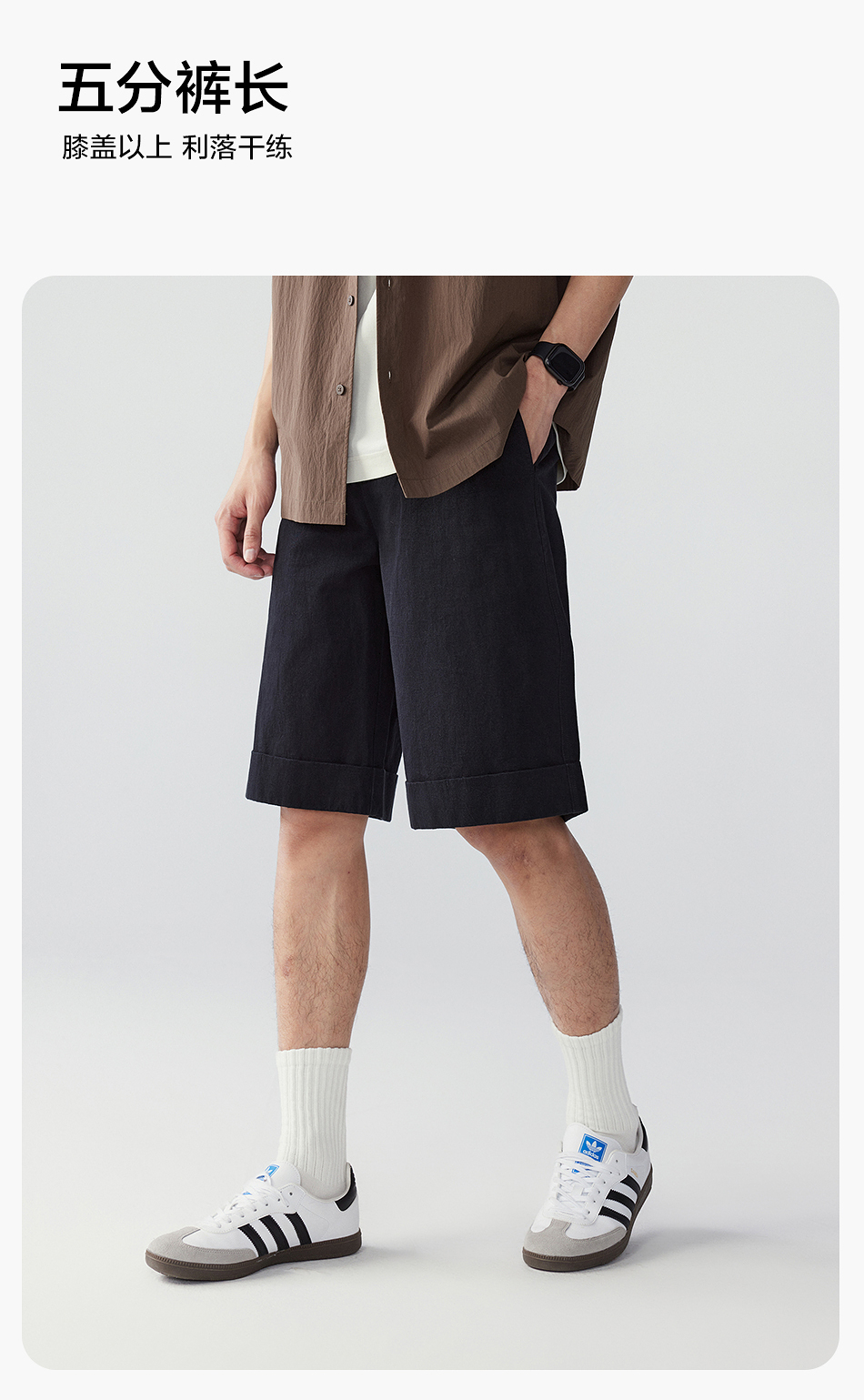 棉仓353818011-宽松直筒全棉盐缩休闲短裤