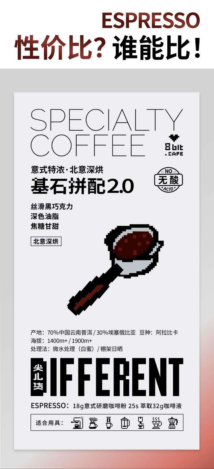 新升级!捌比特基石2.0拼配 精品意式浓缩特浓商用店用咖啡豆 500g