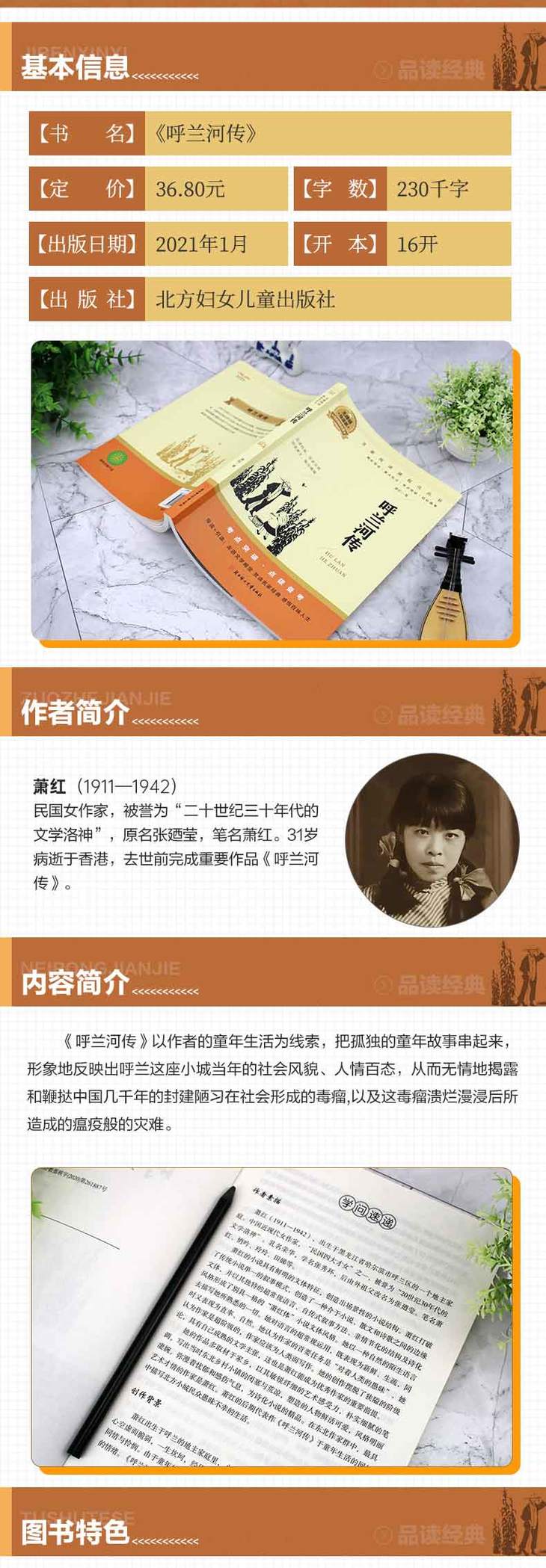 呼兰河传萧红著正版小学生版五年级下册必读的课外书完整版小学生课外阅读书籍经典书目青少年版适合三四六年级看的名著散文读本荐