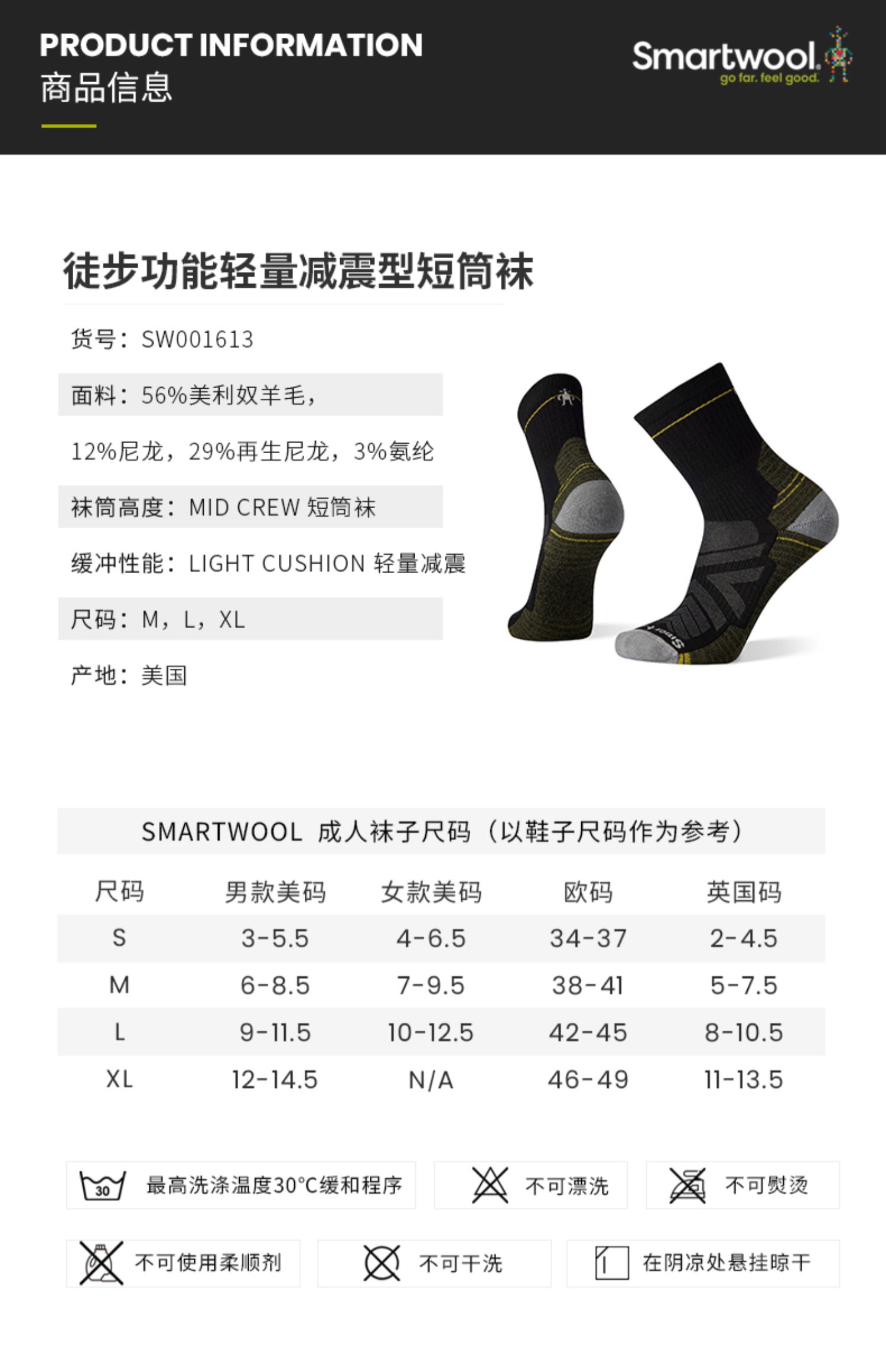 Smartwool 徒步功能轻量减震短筒袜户外美利奴羊毛袜运动袜男1613