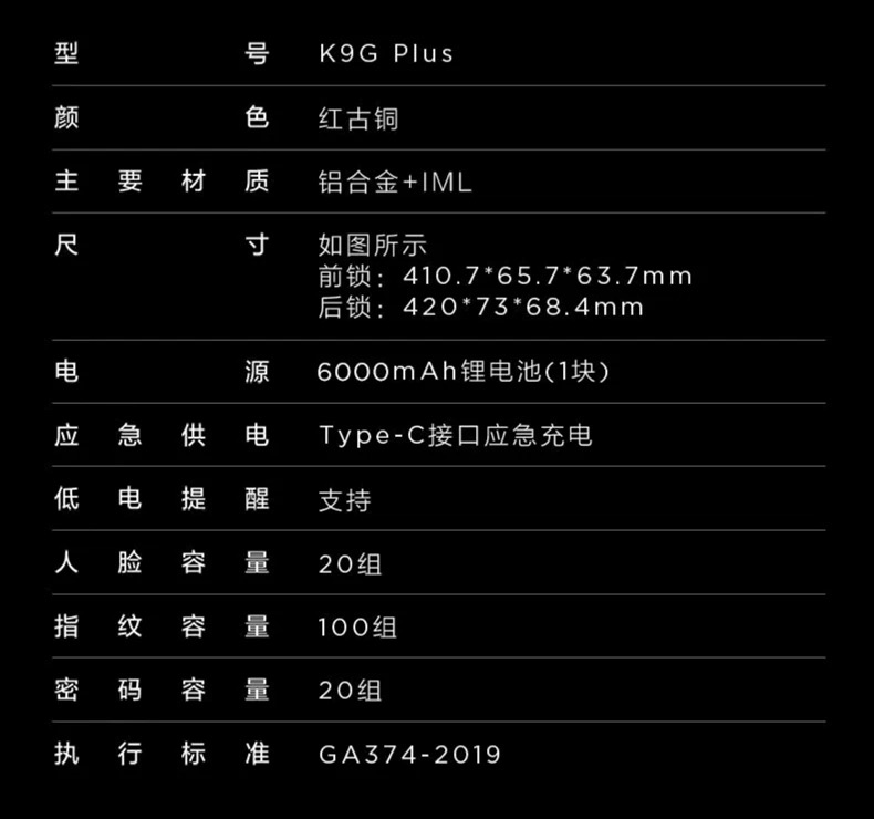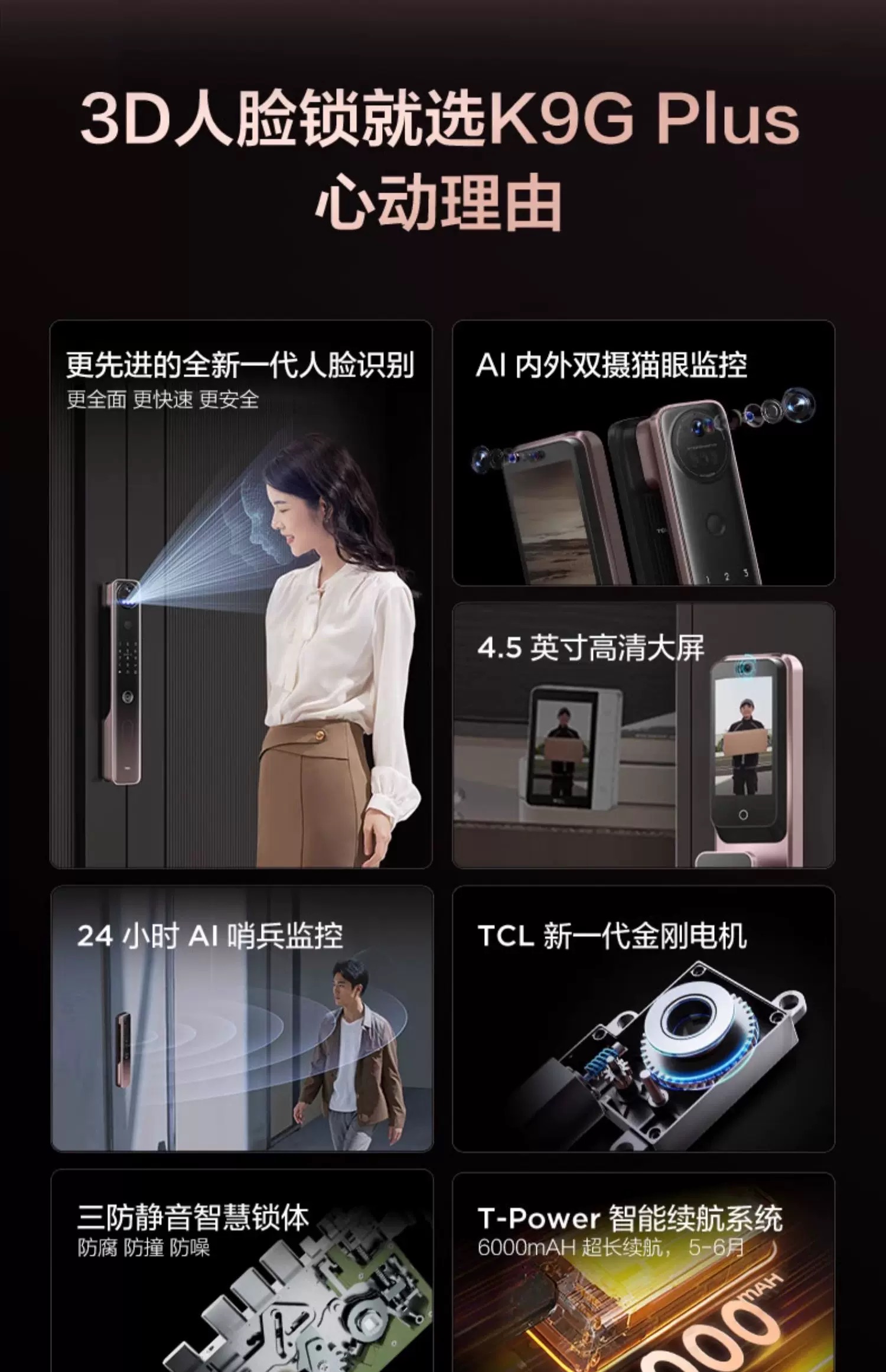 【智能门锁】3D人脸双摄双屏猫眼 双向主动视频通话 三防静音智慧锁 K9G Plus