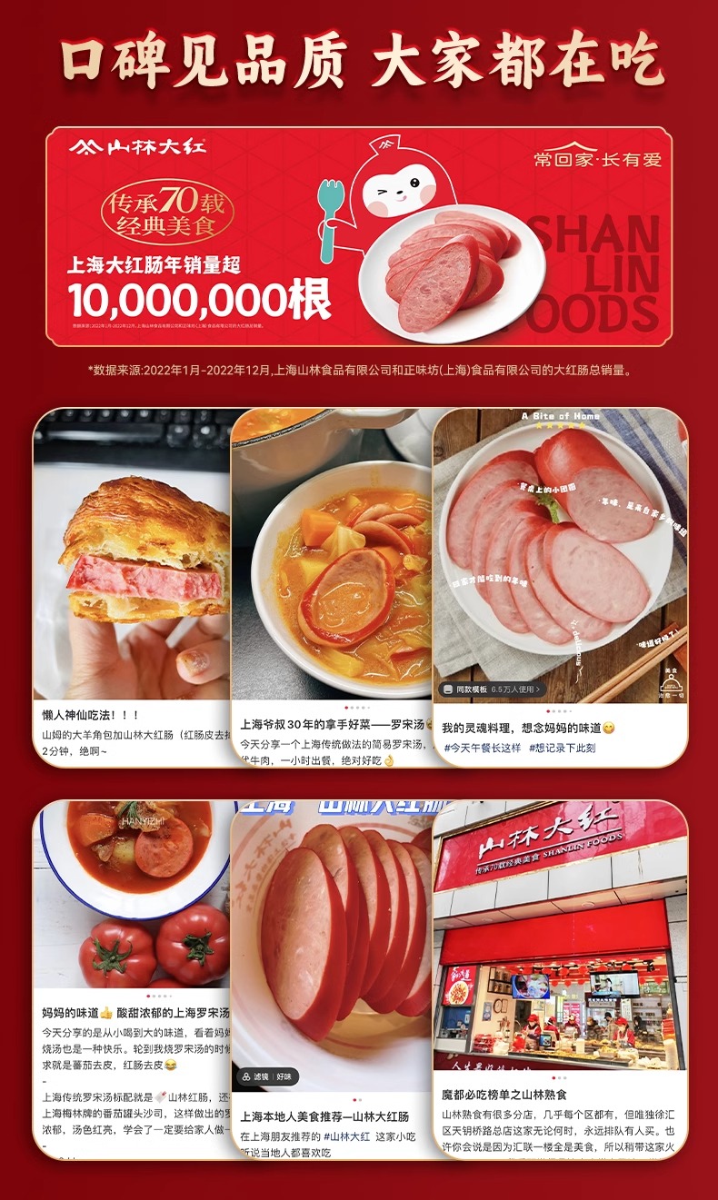 山林大红肠整箱批发瘦肉肠正宗上海风味特产熟食即食真空食品