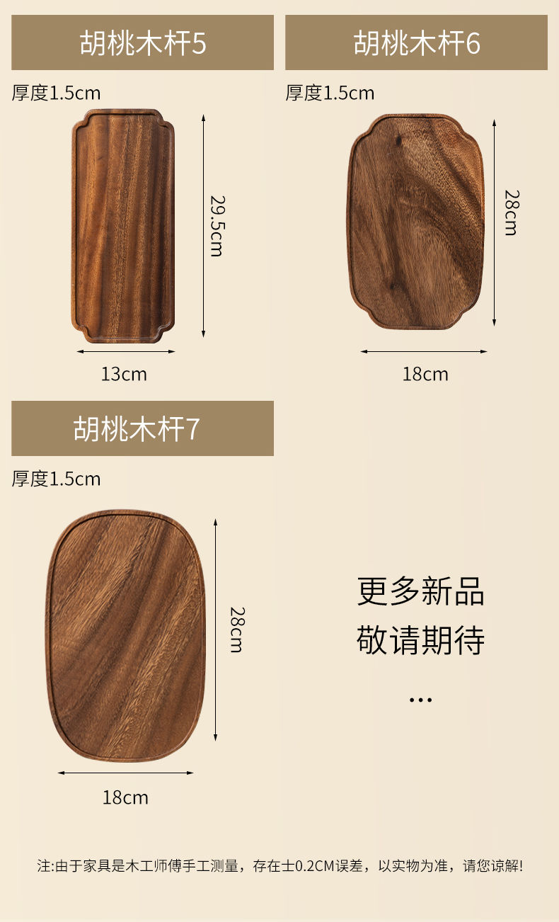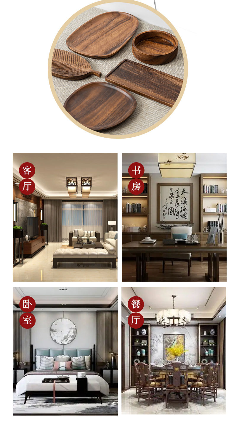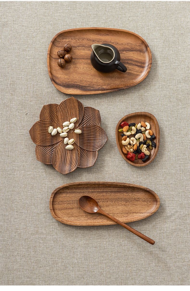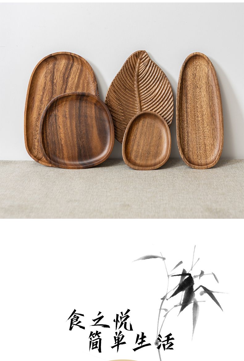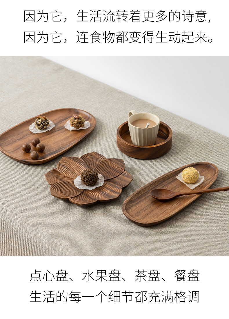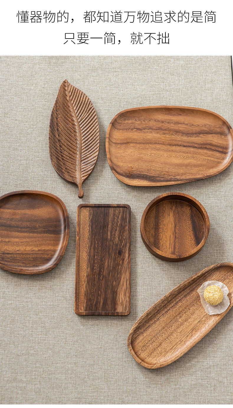实木盘子日式家用相思木长方形托盘木质杯架水杯茶杯盘收纳餐盘托