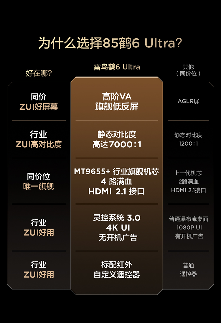 【FFALCON雷鸟】鹤6 Ultra 25款 85英寸 MiniLED 超高对比度 一级能效智能电视机 85英寸 无开机广告 85S595C Ultra