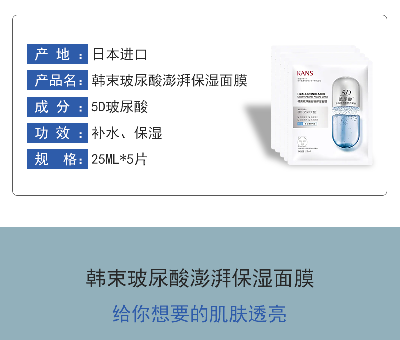 韩束玻尿酸澎润保湿面膜(25ml*5片)【30171501】