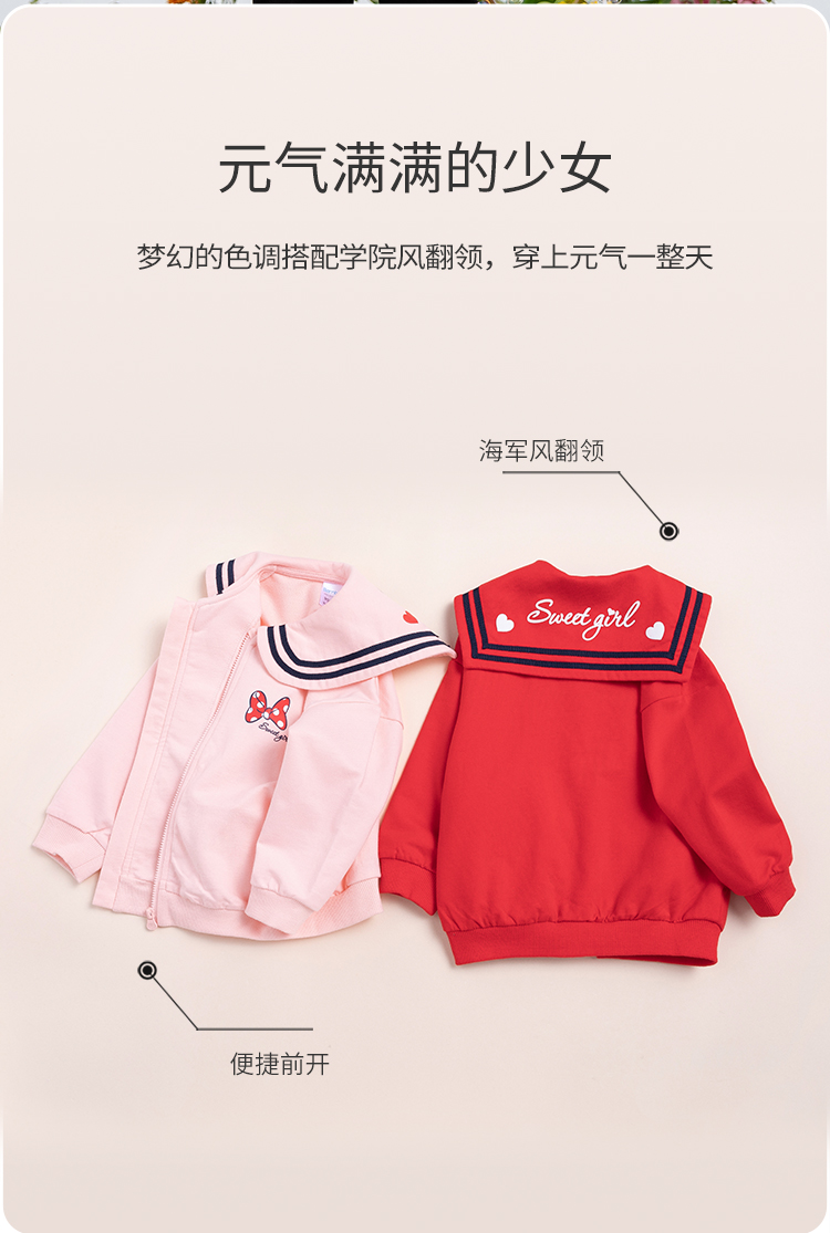 贝贝怡女童外套秋季新款中大童洋气海军风夹克韩版秋装女孩