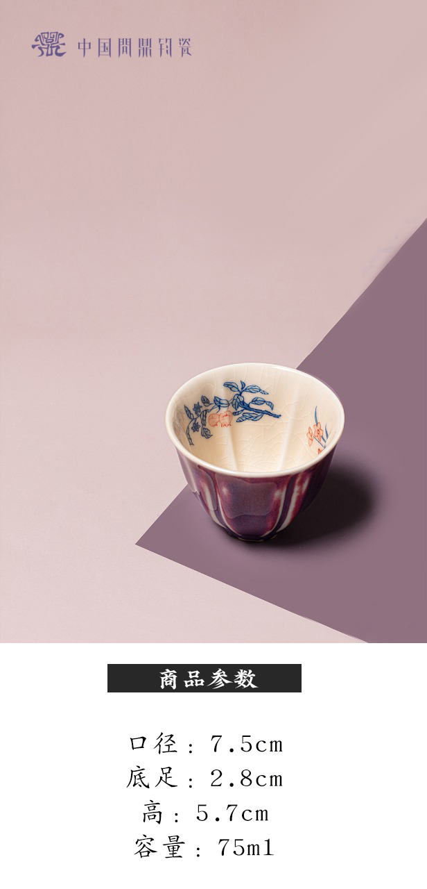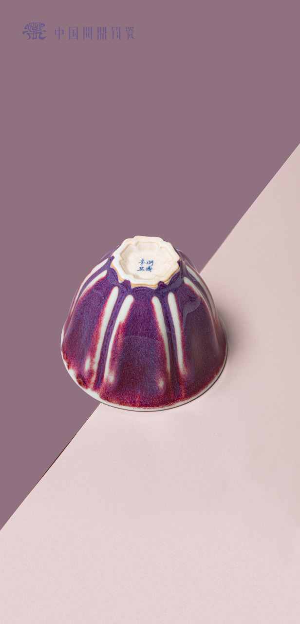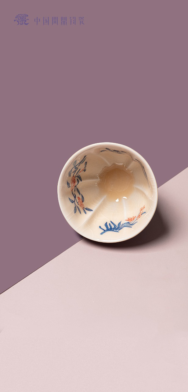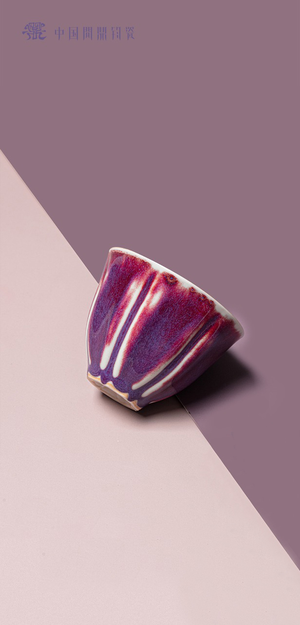 问鼎钧瓷鹅黄青花冰棱杯(三喜)