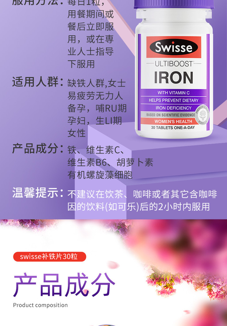 【组合装】香港直邮 澳洲Swisse 迷你版钙+维生素D 300粒*1瓶+澳洲Swisse铁元补铁片 30粒*2瓶