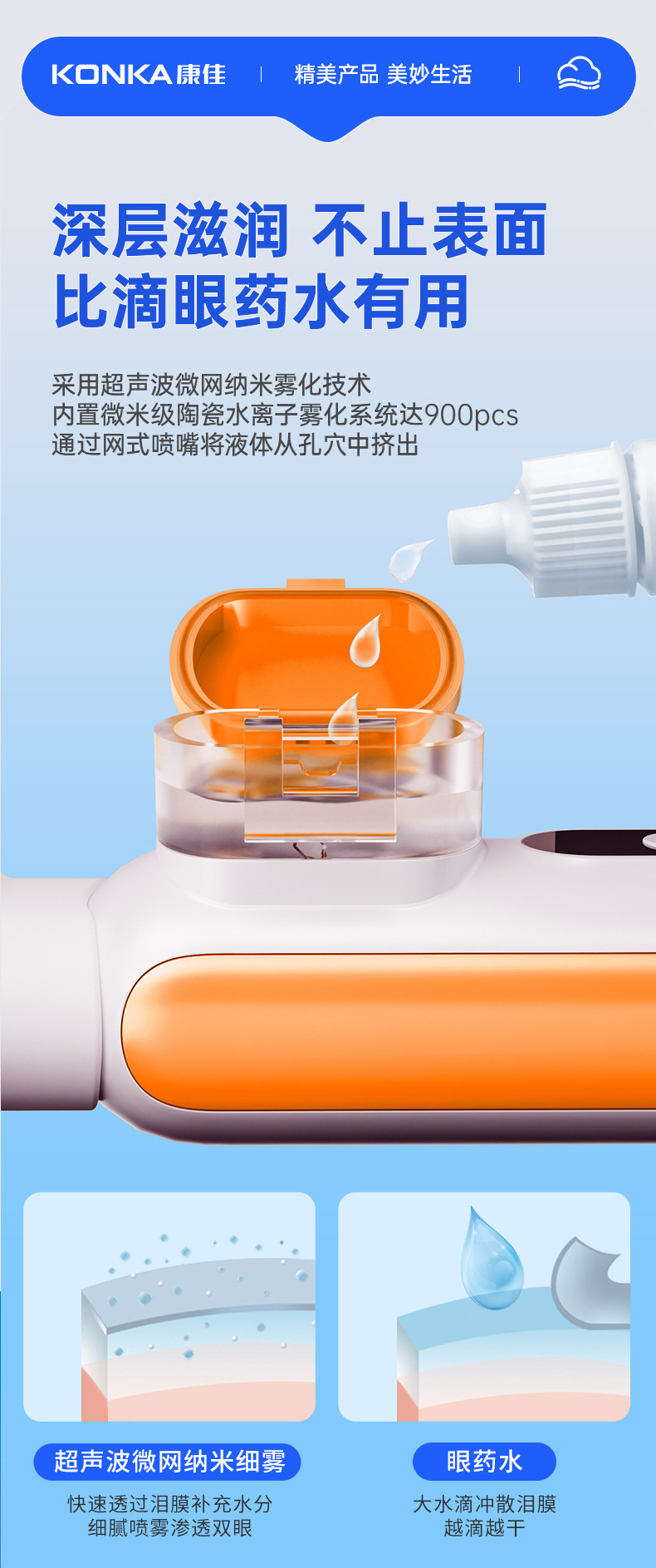 康佳冷热敷纳米雾化润眼仪喷雾蒸眼仪手持眼部雾化仪
