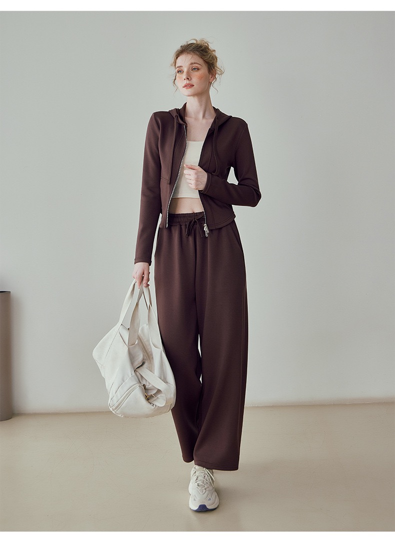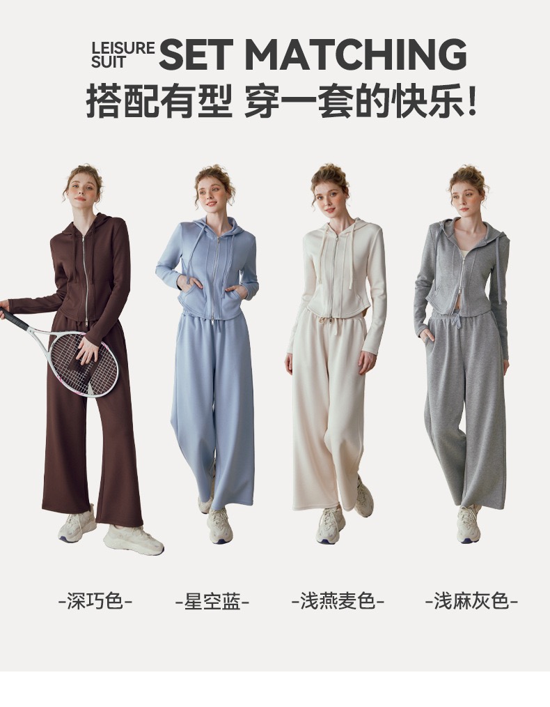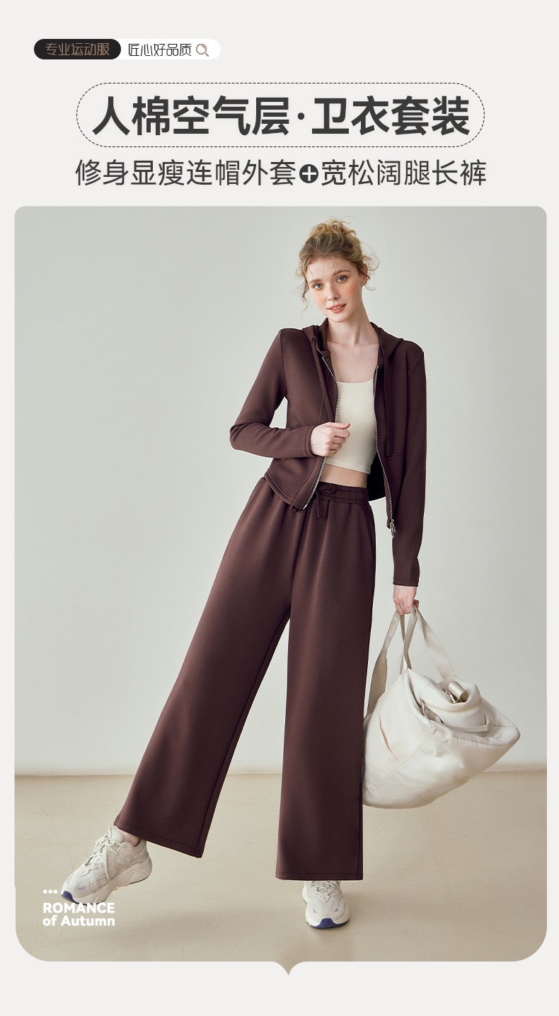 新款加厚保暖连帽瑜伽外套宽松健身阔腿裤两件套 000SF8679