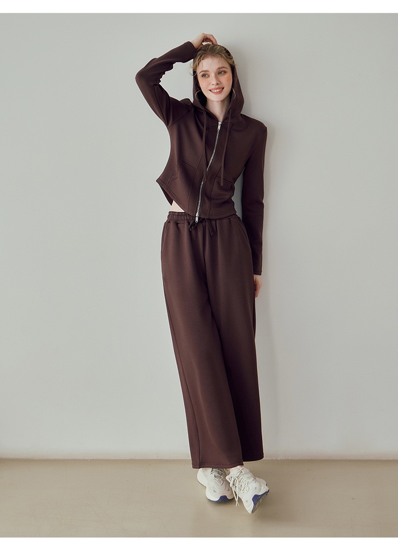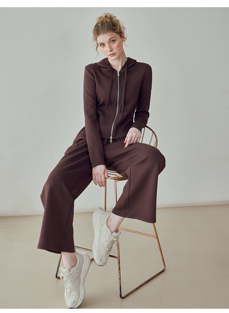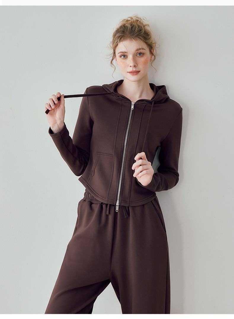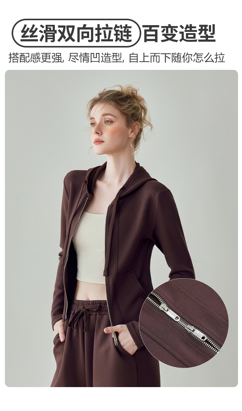 新款加厚保暖连帽瑜伽外套宽松健身阔腿裤两件套 000SF8679