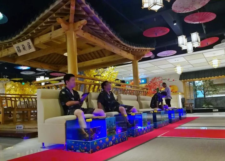 让脚丫与小鱼亲密嬉戏