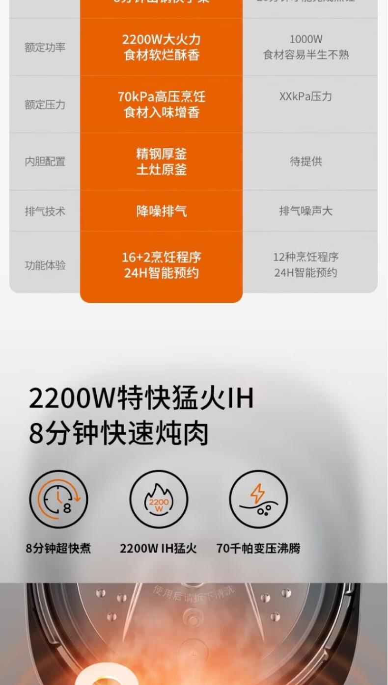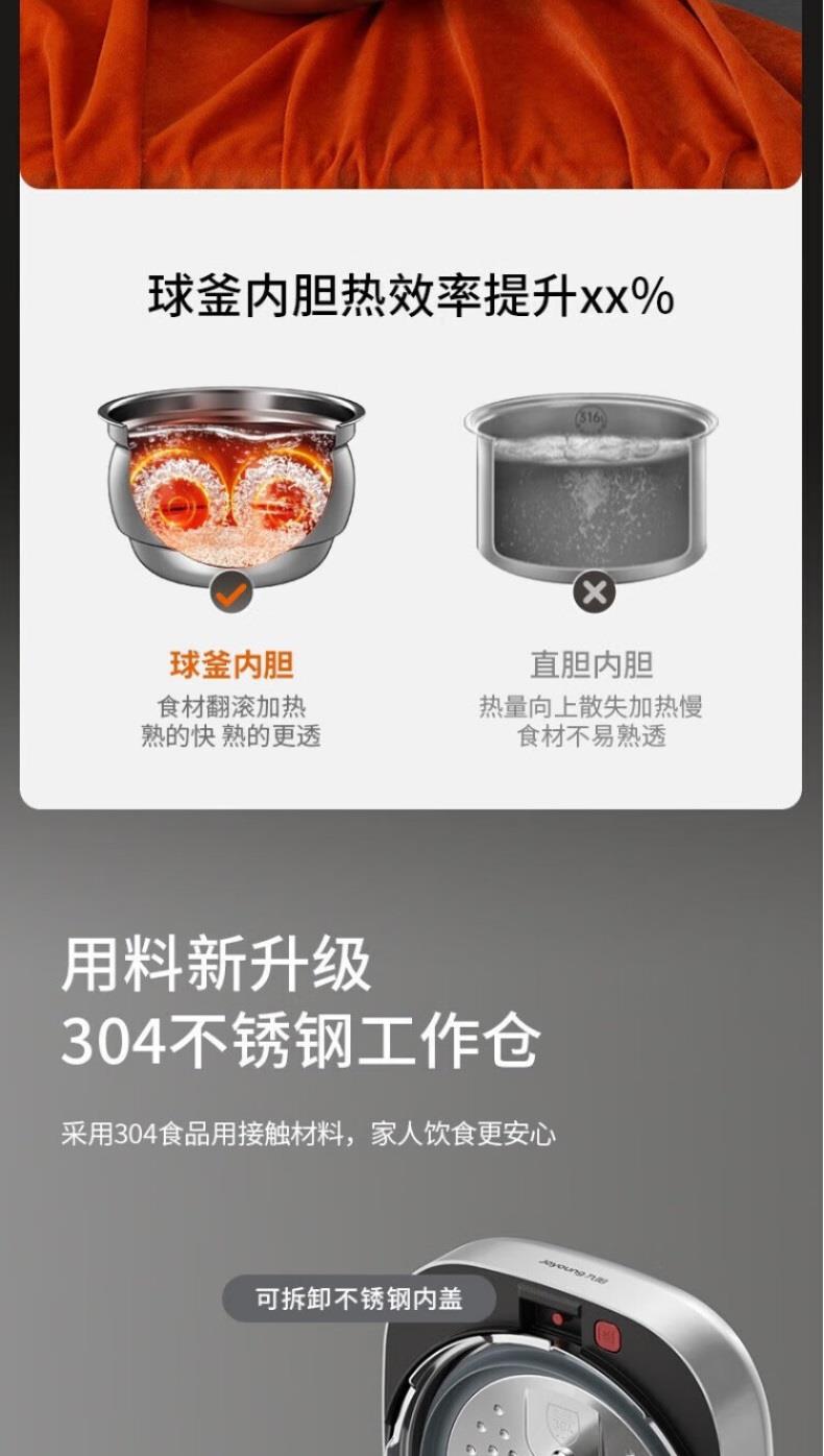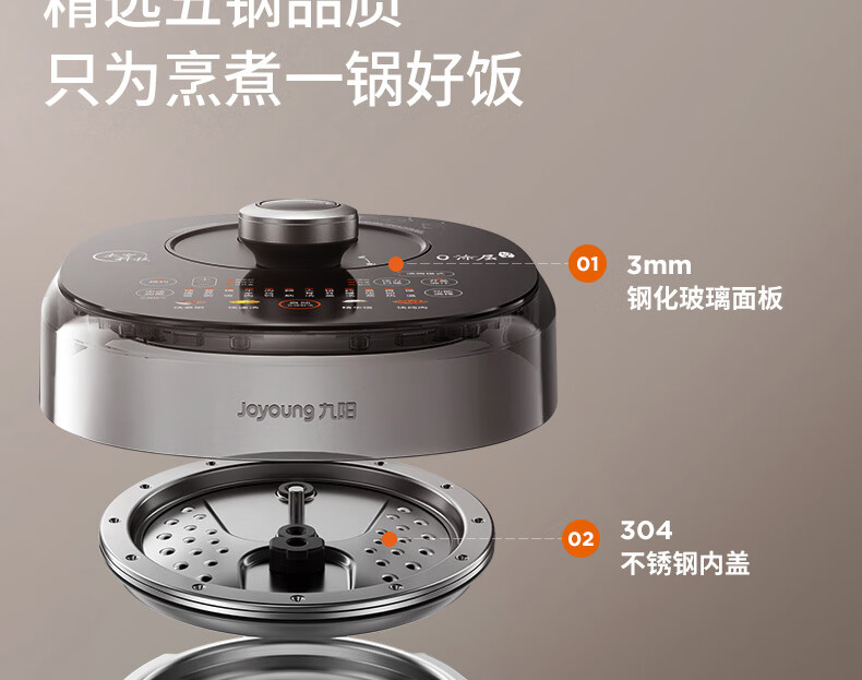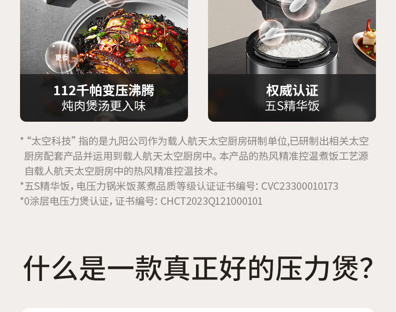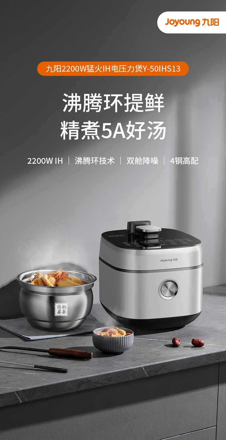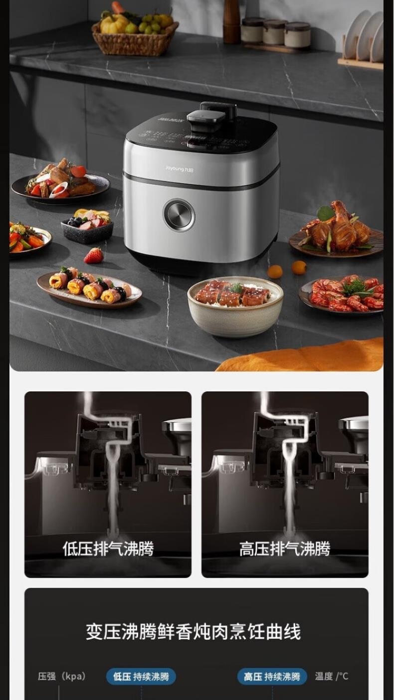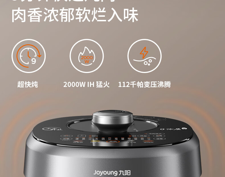 九阳电压力煲2200W猛火IH加热双舱降躁智能沸腾球釜电压力锅5L升