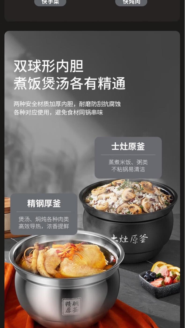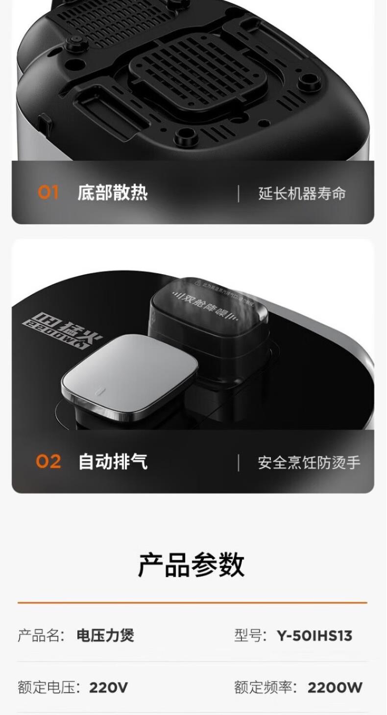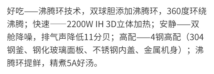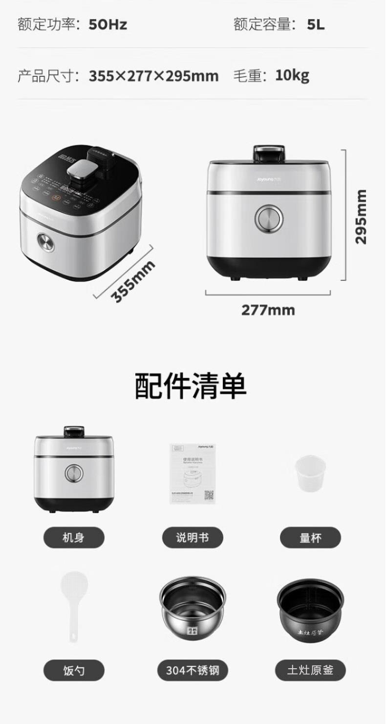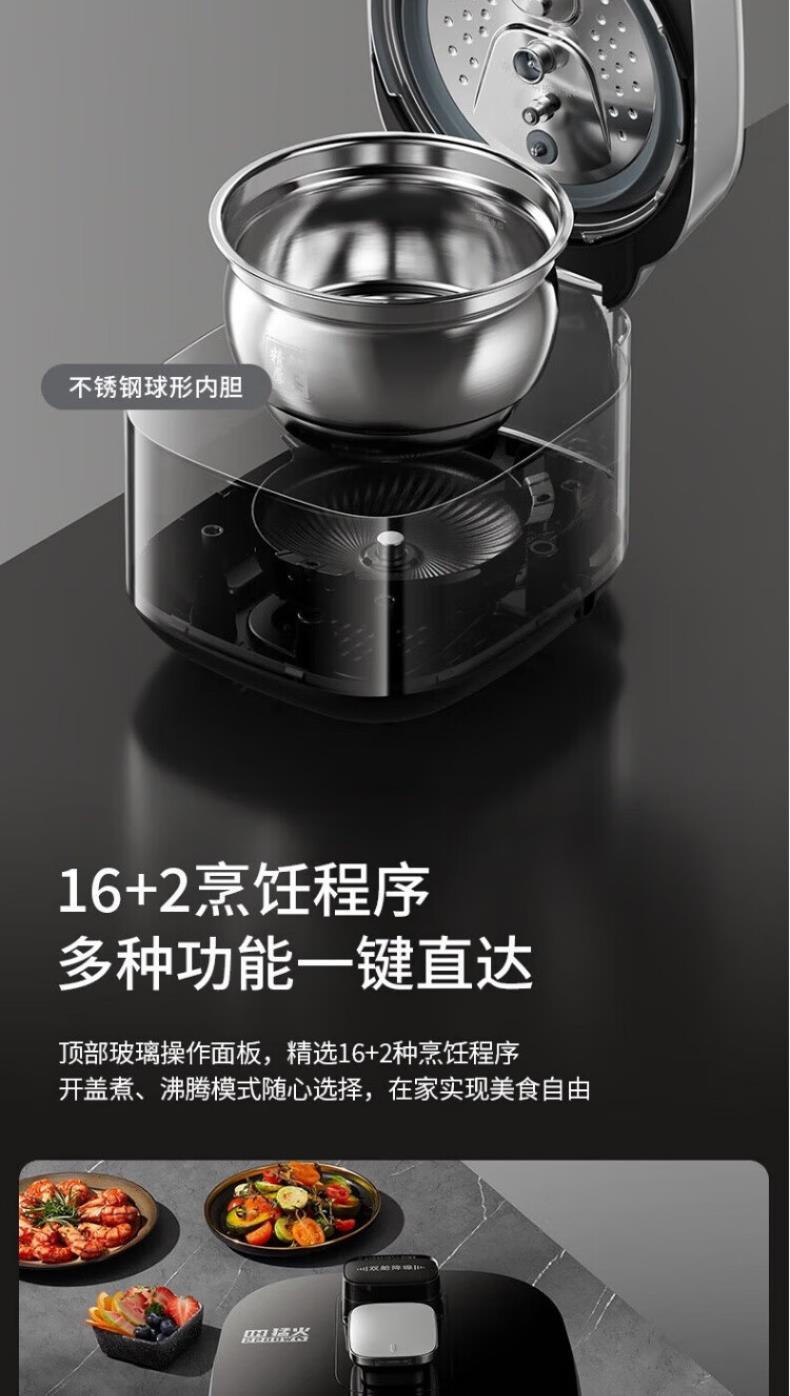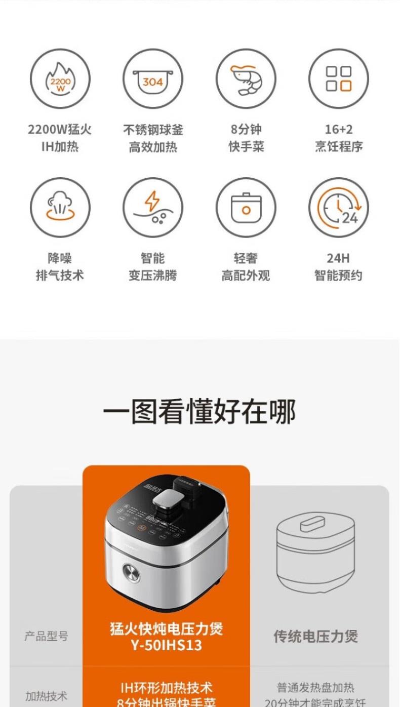 九阳电压力煲2200W猛火IH加热双舱降躁智能沸腾球釜电压力锅5L升