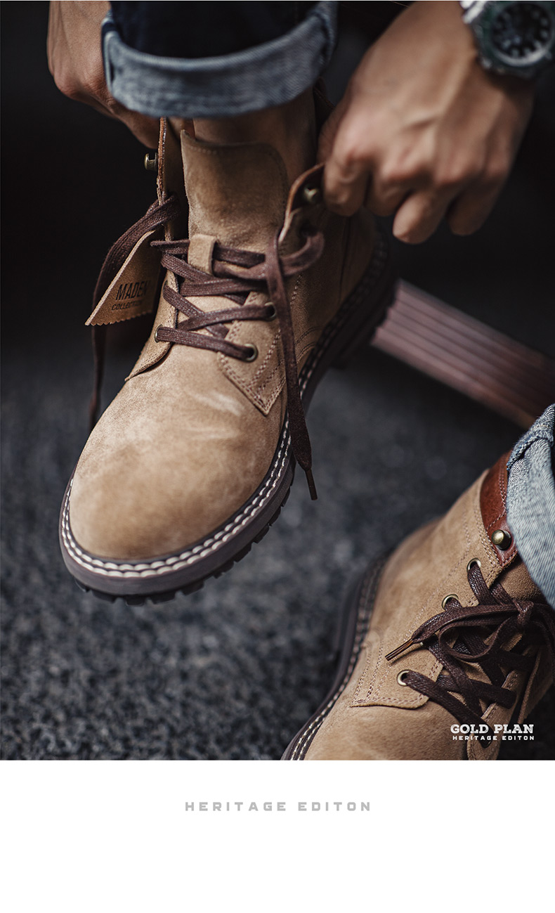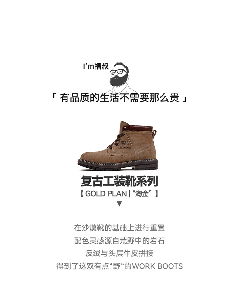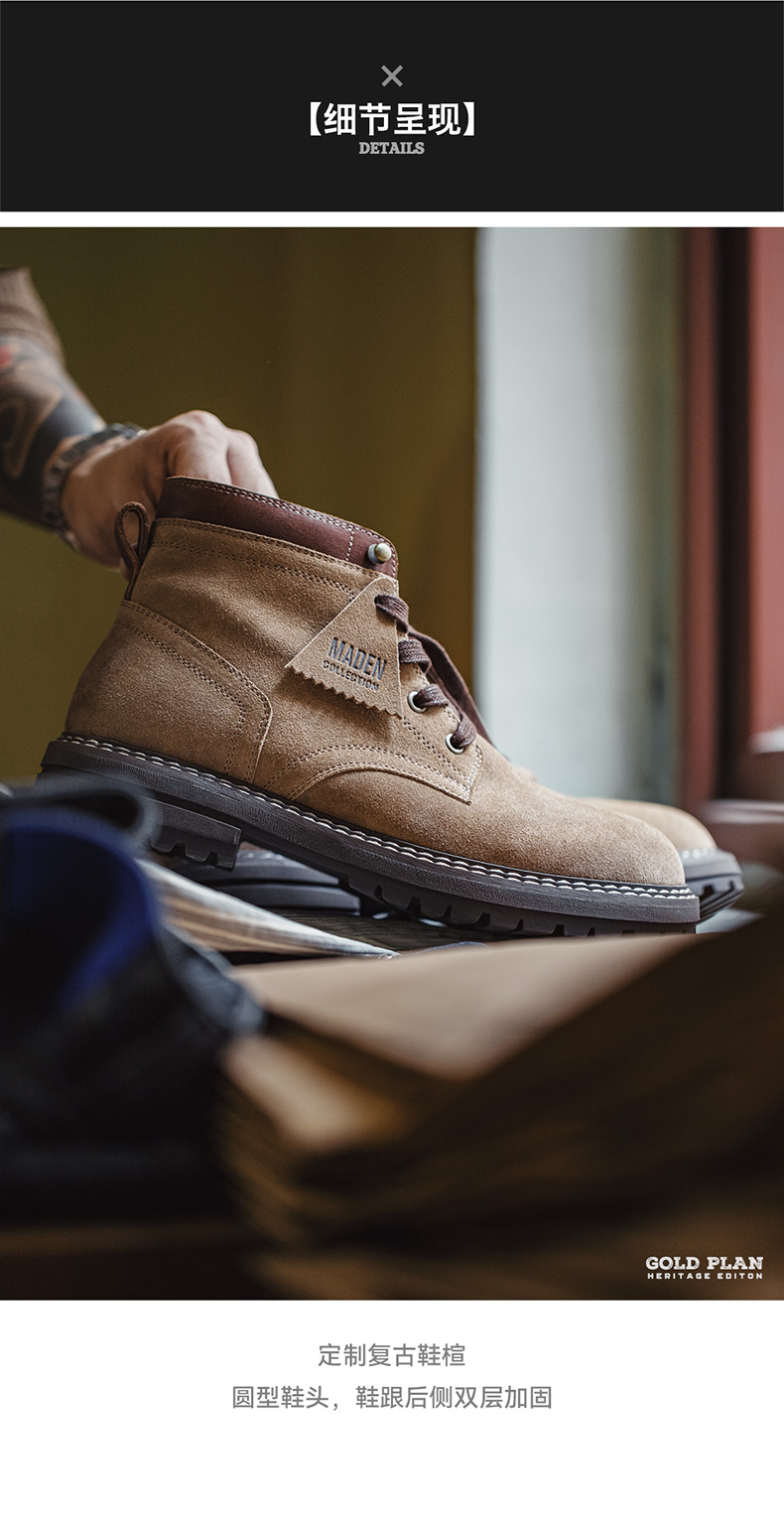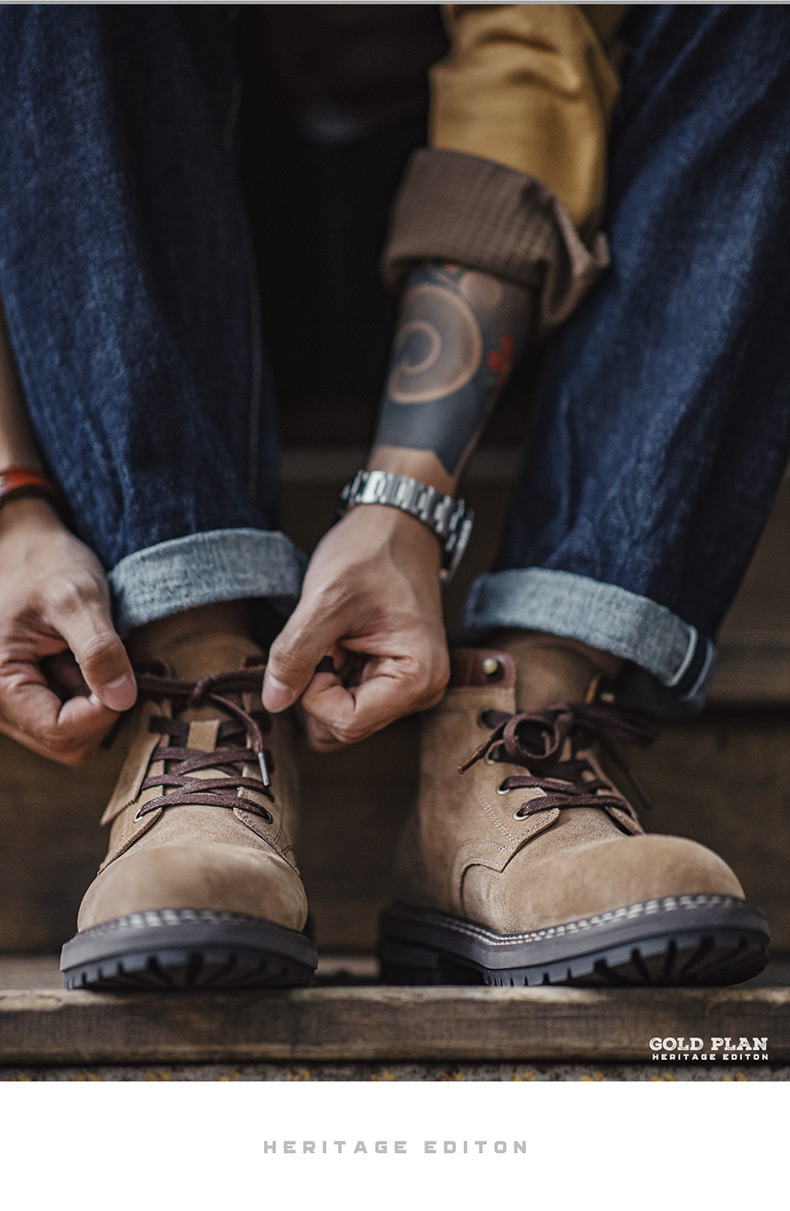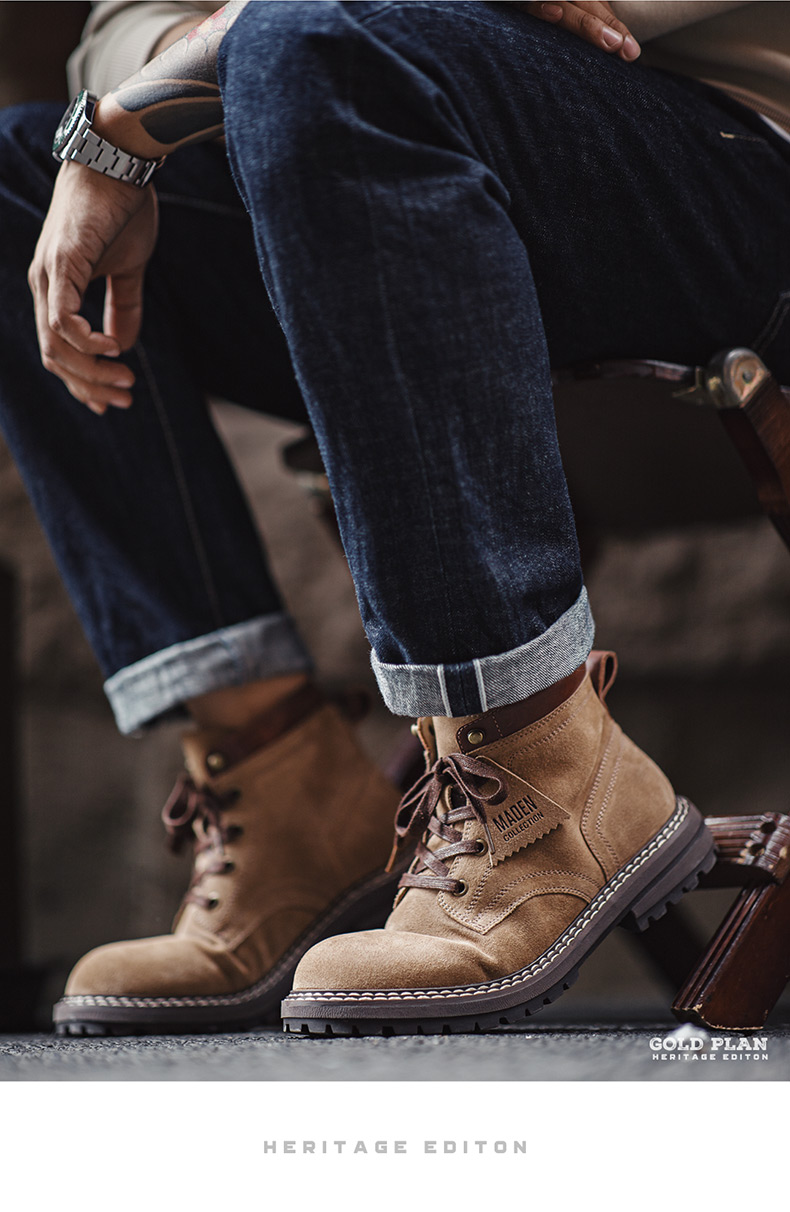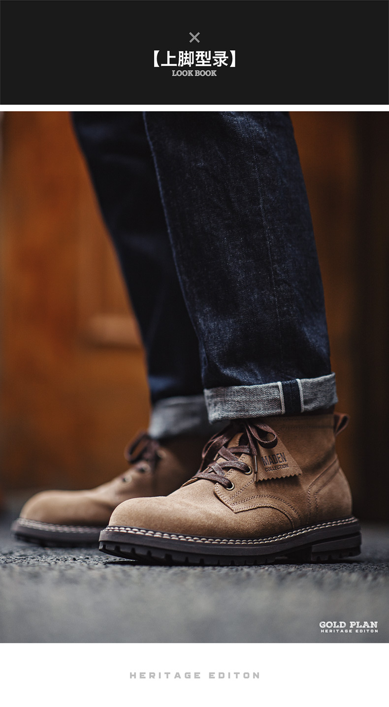 秋季新款工装靴男鞋美式高帮鞋中帮短靴子复古马丁靴百搭沙漠靴