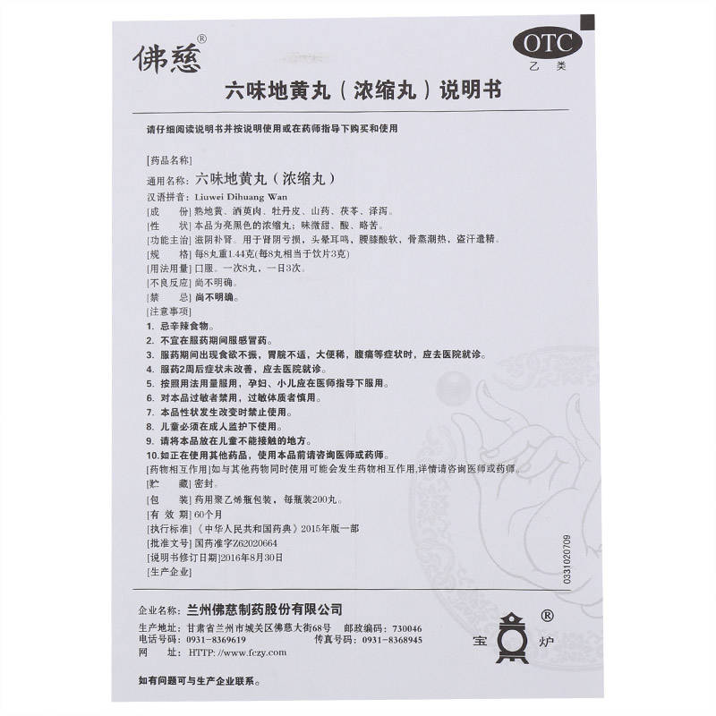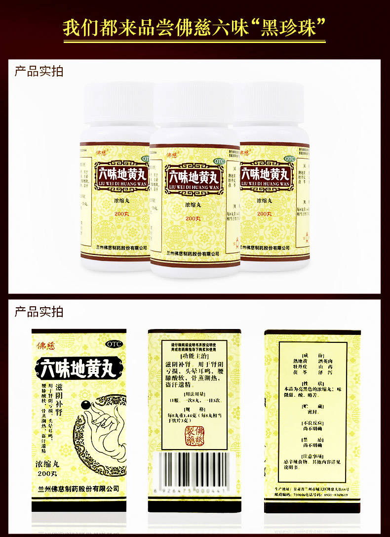 低至17/盒】佛慈 六味地黄丸200粒/盒浓缩丸滋阴补肾头晕腰膝酸软
