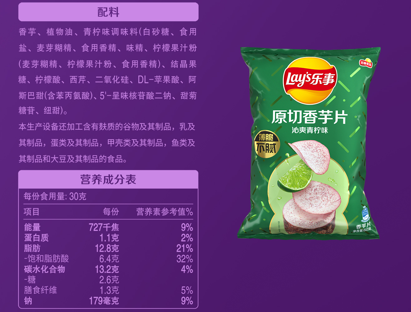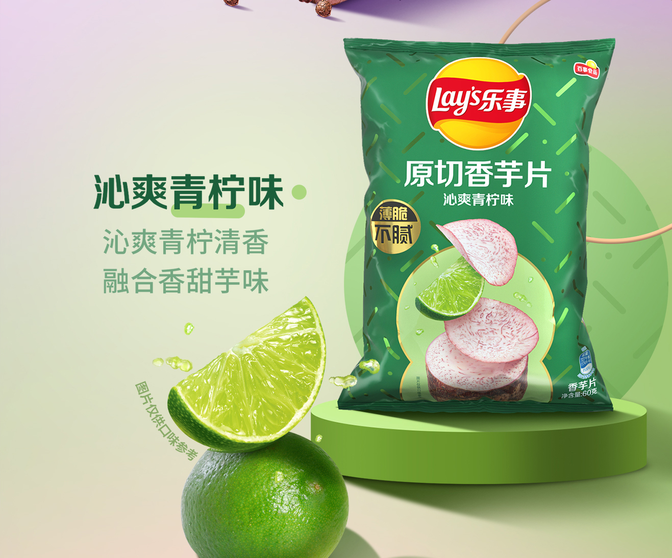 乐事香芋片沁爽青柠味原切芋头片60g/袋休闲下午茶解馋零食大礼包